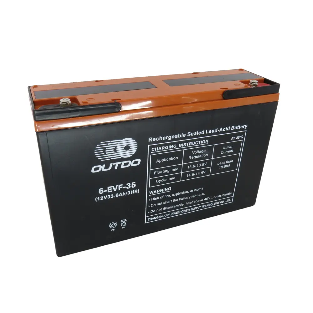 Акумулятор OUTDO 6-EVF-35 є герметизованою свинцево-кислотною (VRLA) батареєю, яка, найімовірніше, використовує технологію AGM (Absorbent Glass Mat) або GEL. Це означає, що електроліт абсорбований у скловолоконні сепаратори або перебуває у вигляді гелю, що усуває необхідність в обслуговуванні, запобігає витокам і дозволяє експлуатувати батарею в будь-якому положенні (крім перевернутого). Такий тип конструкції також забезпечує підвищену вібростійкість та безпеку, що є особливо важливим для використання на транспортних засобах. Зазвичай такі акумулятори мають міцний пластиковий корпус, компактні розміри для зручного монтажу та клеми для надійного підключення.