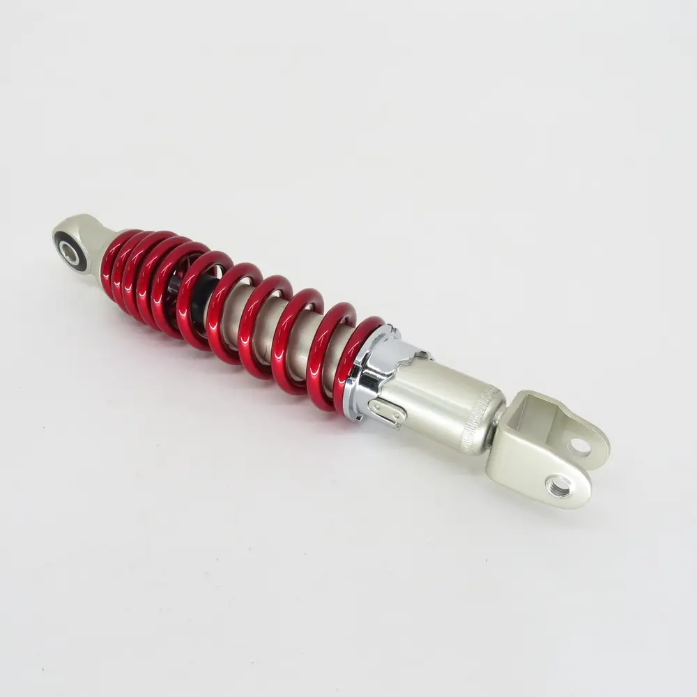 Конструкція амортизатора включає в себе міцний сталевий корпус, високоякісний демпфуючий елемент (як правило, гідравлічний, що забезпечує плавне поглинання коливань) та сталеву пружину, яка відповідає за поглинання основних ударів та підтримку ваги скутера. Оптимальне співвідношення жорсткості пружини та характеристик демпфування (стиснення та відбою) гарантує ефективну роботу підвіски при різних навантаженнях – чи то поїздка наодинці, чи з пасажиром, чи з додатковим вантажем. Шток амортизатора має спеціальне покриття для зменшення тертя та запобігання корозії, що додатково збільшує його термін служби.