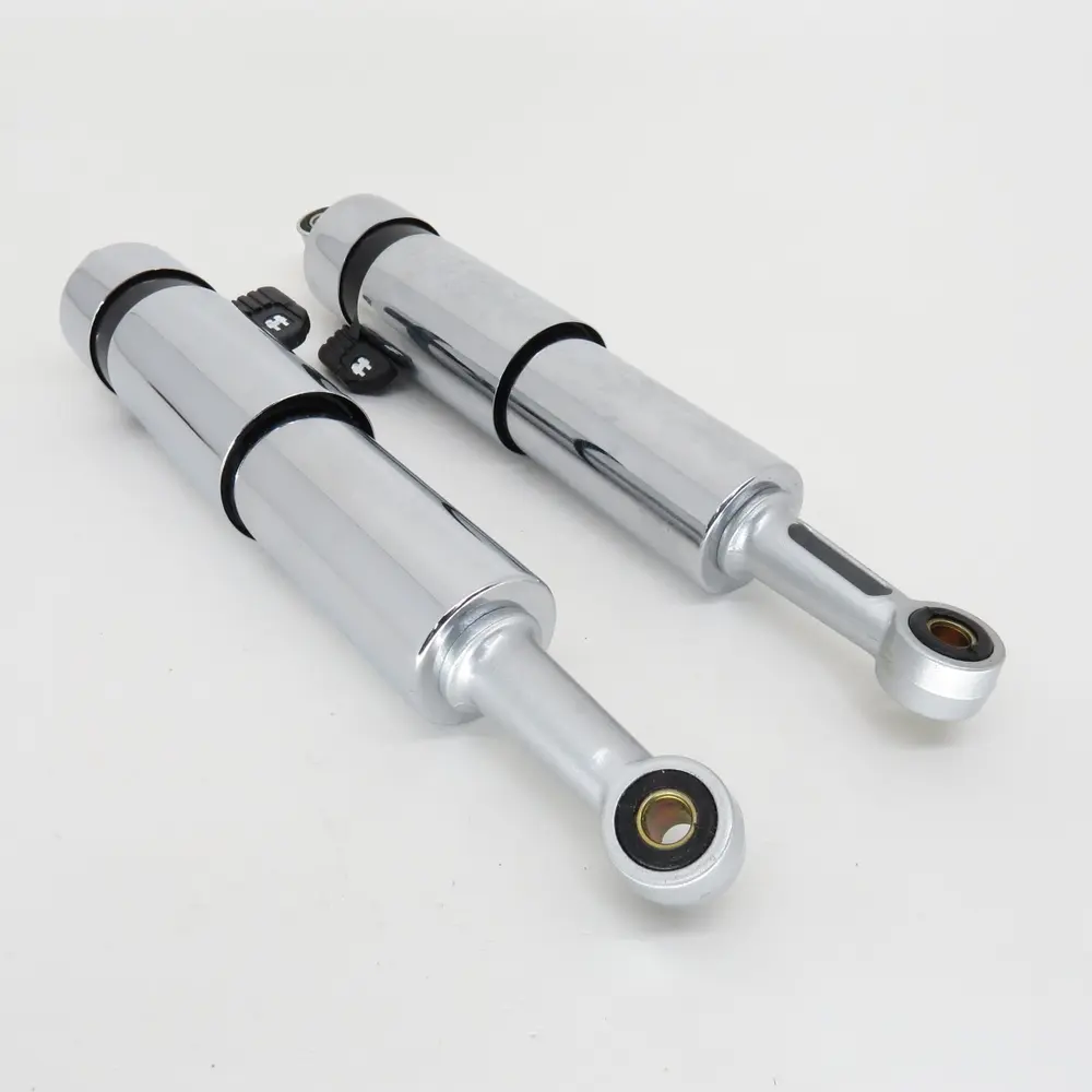 - Надійний демпфуючий елемент: В основі амортизаторів лежить високоякісна гідравлічна система демпфування, яка ефективно гасить коливання, не допускаючи надмірного розгойдування мотоцикла після проїзду нерівностей. Це забезпечує виняткову стабільність на високих швидкостях, точність керування в поворотах та відчуття повного контролю над мотоциклом.