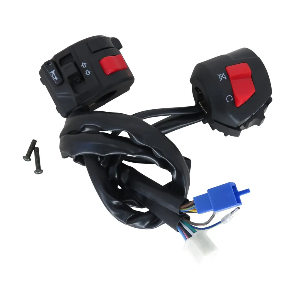 Правий блок керування інтегрує в собі функції, що безпосередньо впливають на роботу двигуна та систему освітлення, забезпечуючи повний контроль над мотоциклом. До складу правого блоку входять: