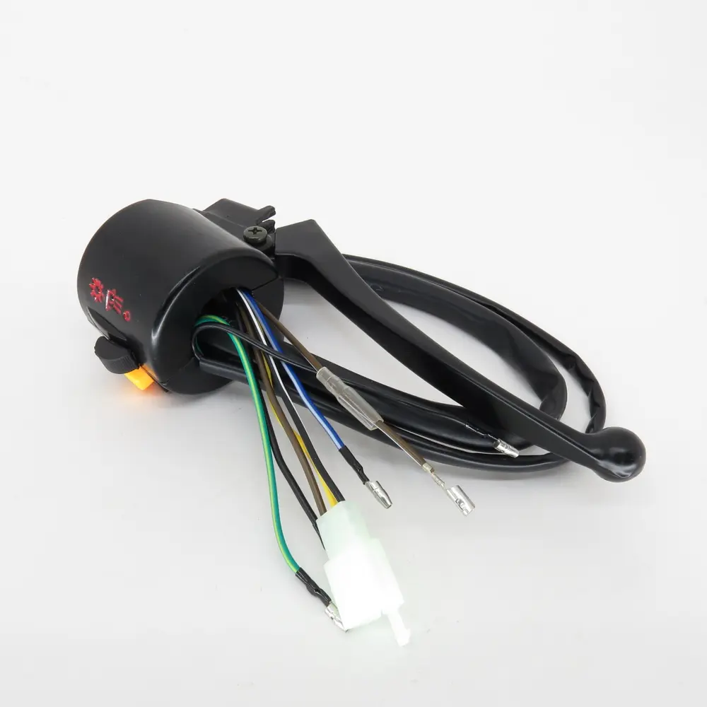 Крім того, блок оснащений аварійним вимикачем двигуна (kill switch), який є життєво важливим елементом безпеки. Він дозволяє миттєво зупинити двигун у непередбачених ситуаціях, запобігаючи можливим аваріям або пошкодженням. Чіткий механізм та зручне розташування цього перемикача забезпечують швидкий доступ та інтуїтивне використання, що особливо важливо в екстремальних обставинах. Деякі конфігурації правого блоку також можуть включати перемикачі для керування освітленням – наприклад, для увімкнення/вимкнення фар або перемикання режимів світла, якщо ці функції не інтегровані в лівий блок. Це забезпечує повний контроль над видимостю вашого мотоцикла для інших учасників руху, підвищуючи загальний рівень безпеки.