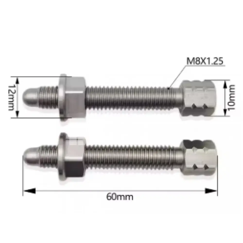 - Практичний комплект з 2 штук: Продаж у комплекті по два болти є дуже зручним, оскільки натяг ланцюга на більшості мотоциклів регулюється з обох боків маятника. Одночасна заміна обох болтів гарантує рівномірне зношування, синхронну роботу механізму натягу та запобігає дисбалансу, який може виникнути при використанні старих і нових деталей разом.