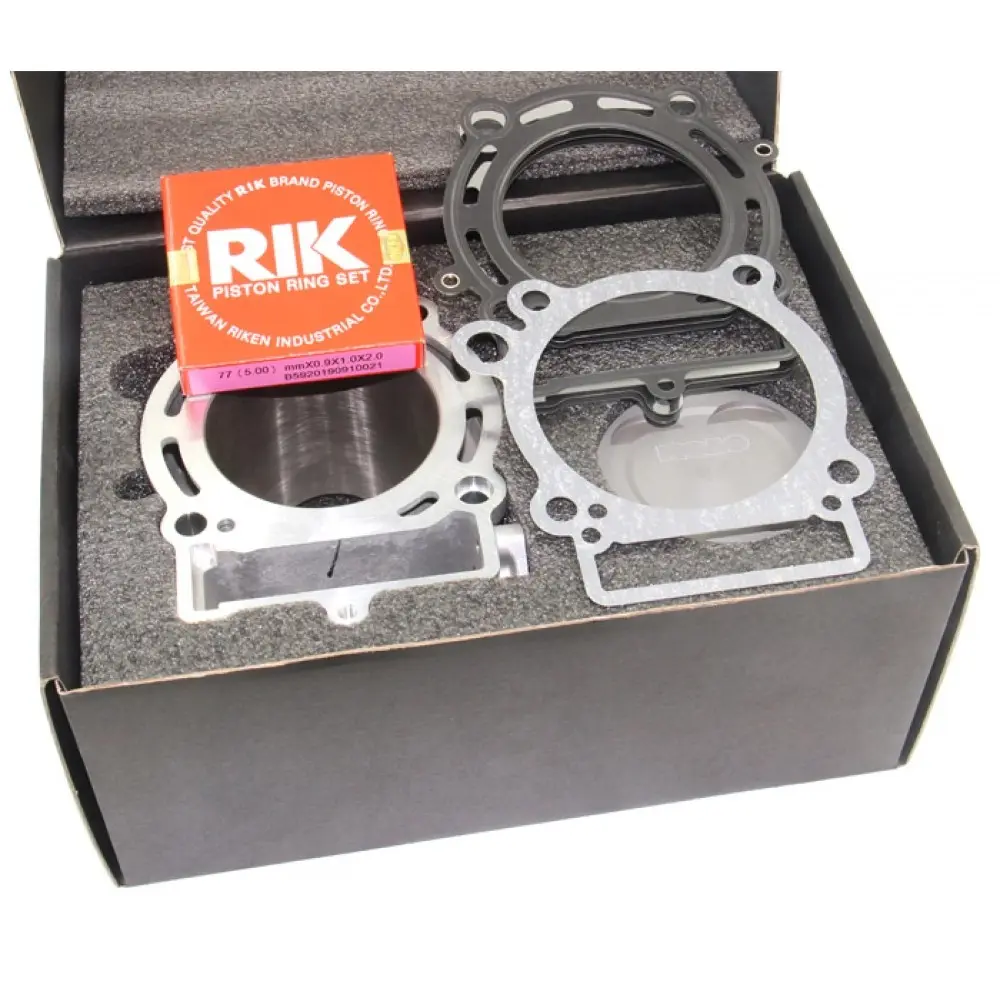 Повний комплект для встановлення: Окрім циліндра та поршня з кільцями, комплект включає всі необхідні прокладки (головки циліндра та основи), палець поршня та стопорні кільця. Це робить його повністю готовим до встановлення без необхідності докуповувати додаткові компоненти, що значно спрощує процес модернізації та дозволяє швидше повернути ваш мотоцикл в стрій з підвищеною продуктивністю.