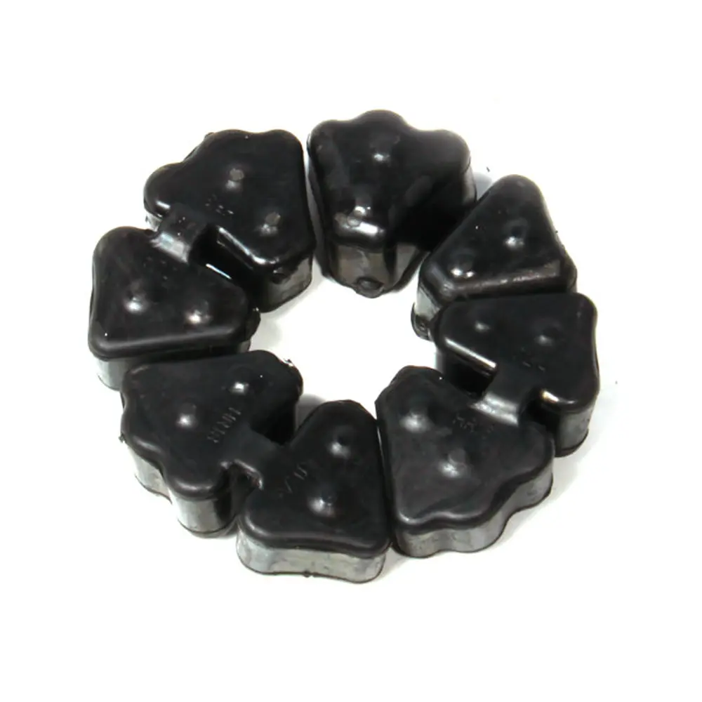 Ці гумові вставки не випадково називаються "демпферними", адже їхнє основне призначення – демпфування, тобто поглинання ударних навантажень та вібрацій. Вони виникають при передачі крутного моменту від двигуна до заднього колеса через ланцюгову передачу. Демпферні резинки розташовуються у спеціальних посадочних місцях маточини заднього колеса, між зіркою приводу та самим колесом, виконуючи функцію еластичного буфера. Саме завдяки їм удари, що виникають при різких прискореннях, перемиканнях передач, скиданні газу чи інтенсивному гальмуванні, ефективно згладжуються. Це запобігає надмірному навантаженню та швидкому зносу зубців зірки, підшипників колеса, елементів ланцюга та інших компонентів трансмісії. Без якісних демпферів, кожен імпульс від двигуна передавався б жорстко, викликаючи швидке руйнування металевих частин та створюючи дискомфорт для райдера.