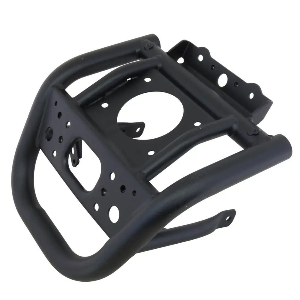 Для виготовлення передньої захисної дуги для Segway Snarler AT5L використана високоміцна сталь, яка забезпечує виняткову жорсткість та стійкість до деформацій навіть при значних навантаженнях. Кожен елемент конструкції ретельно розроблений та протестований для забезпечення максимальної надійності та довговічності. Поверхня дуги покрита стійкою порошковою фарбою чорного кольору, яка не тільки додає естетичної привабливості, але й виконує важливу захисну функцію. Це покриття ефективно оберігає метал від корозії, подряпин, впливу агресивних хімічних речовин, вологи та ультрафіолетового випромінювання. Завдяки цьому, дуга зберігає свій первісний вигляд та захисні властивості протягом усього терміну експлуатації, незалежно від погодних умов.