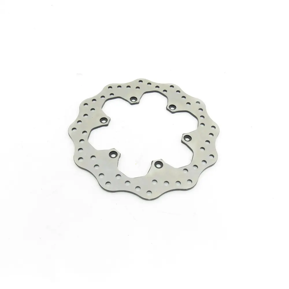 Приставка «PRO» у назві мотоцикла KOVI NC250-4Т PRO свідчить про його високі вимоги до компонентів, і гальмівний диск не є винятком. Цей задній гальмівний диск виготовлений із високоякісної легованої сталі, яка пройшла спеціальну термічну обробку. Це забезпечує неперевершену міцність, стійкість до високих температурних навантажень та мінімальну схильність до деформації навіть під час екстремального гальмування. Використання передових технологій виробництва гарантує ідеальну геометрію диска, що є критично важливим для рівномірного зносу гальмівних колодок та відсутності вібрацій. Оптимізована конструкція диска, що включає спеціальні вентиляційні отвори або прорізи, сприяє швидкому відведенню тепла, запобігаючи перегріву та забезпечуючи стабільну гальмівну ефективність протягом усього терміну служби. Це дозволяє райдеру зберігати повний контроль над мотоциклом навіть у умовах інтенсивних і тривалих гальмівних маневрів, забезпечуючи стабільність та передбачуваність реакції.