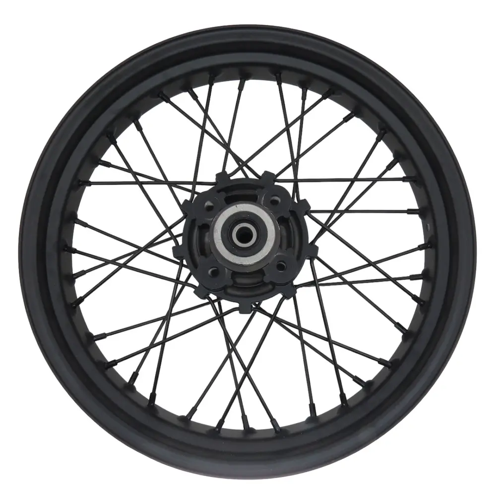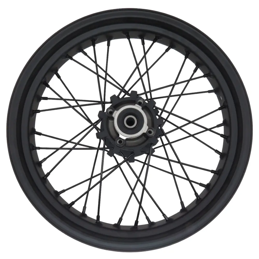 Задній диск для TEKKEN 250 (старого зразка) виготовлений з високоміцного алюмінієвого сплаву, що забезпечує відмінне поєднання легкості та виняткової міцності. Цей матеріал стійкий до значних навантажень, вібрацій та ударів, що є критично важливим для заднього колеса, яке приймає на себе основну частину динамічних навантажень під час руху. Чорне порошкове покриття не тільки надає диску стильного і агресивного вигляду, що ідеально поєднується з дизайном TEKKEN 250, але й забезпечує додатковий захист від корозії, подряпин та впливу агресивного навколишнього середовища. Це покриття гарантує збереження естетичних якостей диска протягом тривалого періоду експлуатації, навіть в умовах інтенсивного використання. Завдяки своїй конструкції, диск забезпечує ефективне відведення тепла від гальмівного механізму, що є запорукою стабільної роботи гальм та підвищеної безпеки.