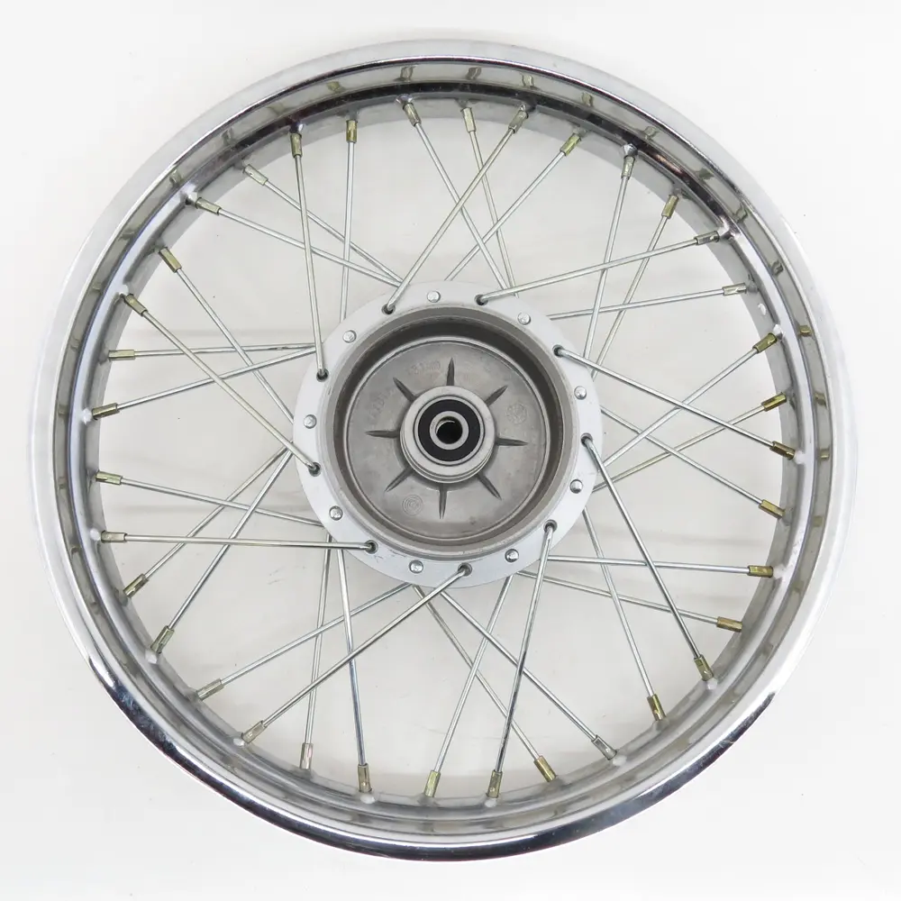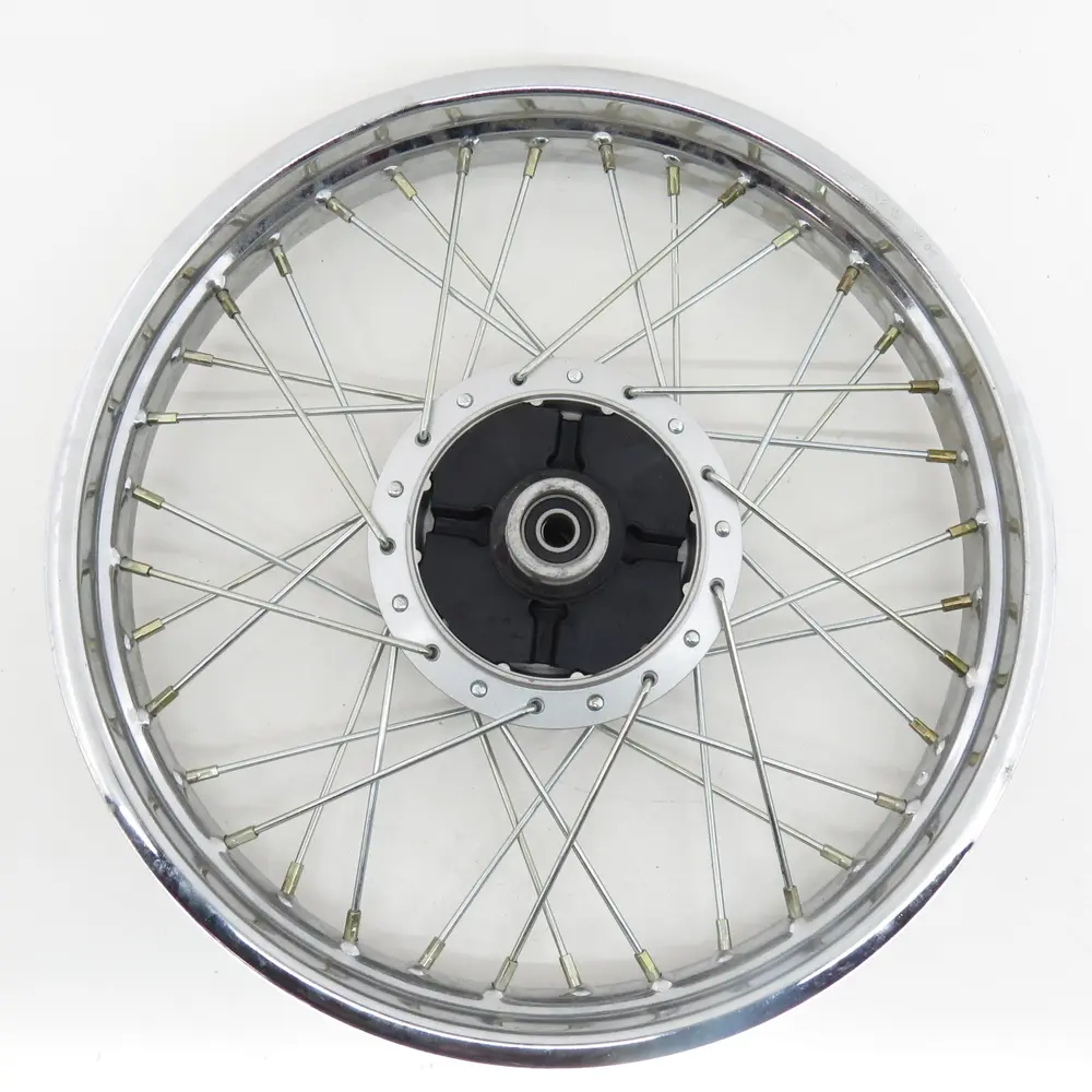 Особливу увагу приділено матеріалам виготовлення. Обод диска, як правило, виробляється з міцного металевого сплаву, що має високу стійкість до деформації та корозії, що є критично важливим для деталей, які постійно піддаються впливу зовнішнього середовища, ударів та вібрацій. Спиці, які з’єднують обід з маточиною, виготовлені зі сталі підвищеної міцності, забезпечуючи надійне зчеплення всіх елементів колеса та рівномірний розподіл навантаження. Сама маточина (ступиця) диска, що кріпиться до осі мотоцикла, має точну геометрію та обробку, що гарантує ідеальне з'єднання з елементами гальмівної системи та трансмісії, а також мінімізує люфти та вібрації під час руху. Всі ці елементи проходять строгий контроль якості на всіх етапах виробництва, щоб забезпечити кінцевому споживачу продукт, який відповідає найвищим стандартам.