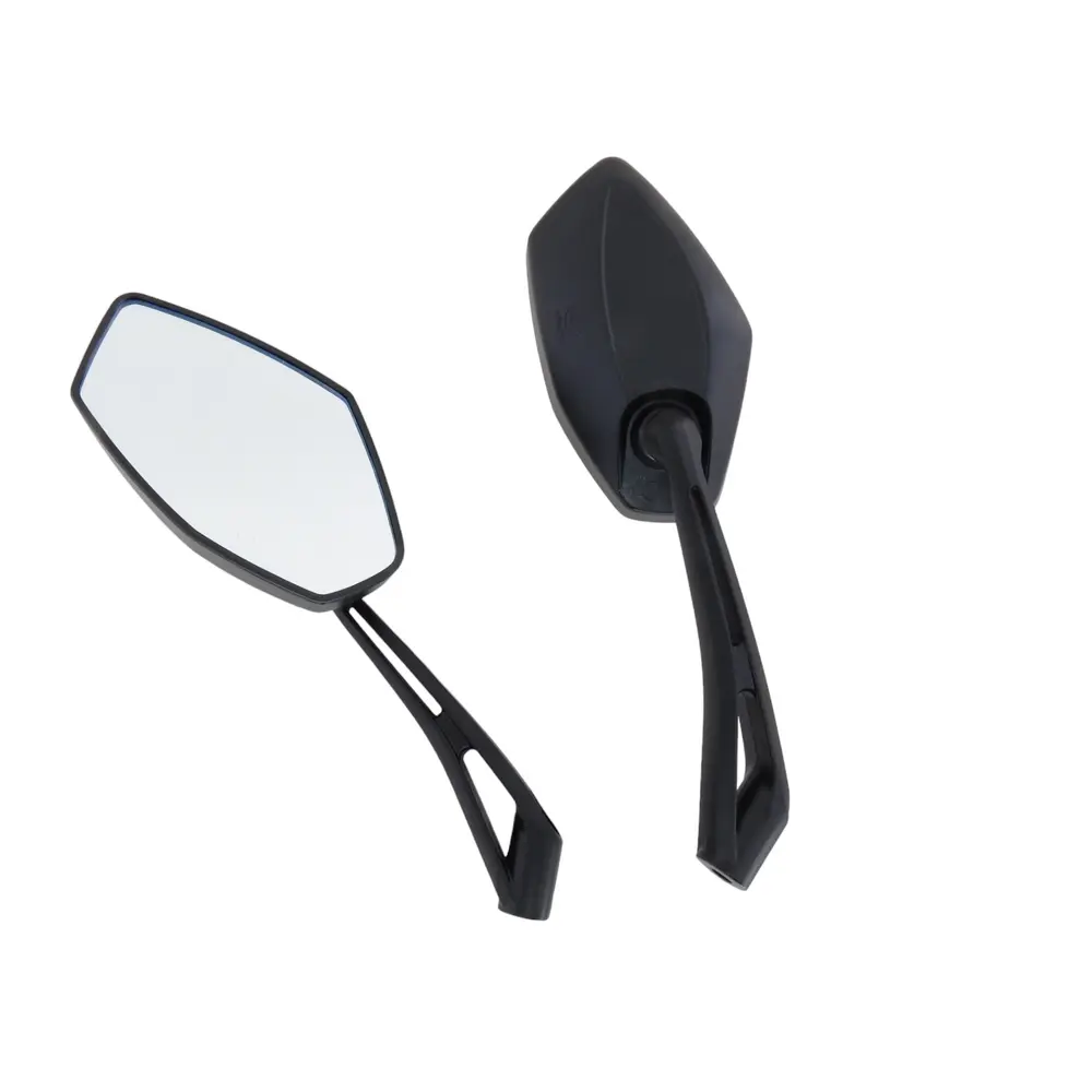 Міцне та надійне кріплення є ключовим елементом, що гарантує стабільну фіксацію дзеркала на кермі. Воно спроектоване таким чином, щоб запобігати будь-яким зсувам або розхитуванню дзеркала навіть під час інтенсивної їзди по нерівній місцевості, крутих поворотах або стрибках. Металева ніжка, що з'єднує дзеркальний елемент з кріпленням, забезпечує додаткову жорсткість та стійкість до вібрацій, що є критично важливим для збереження чіткості зображення та запобігання "розмиванню" картинки. Це дозволяє водієві завжди мати стабільний та зрозумілий огляд.