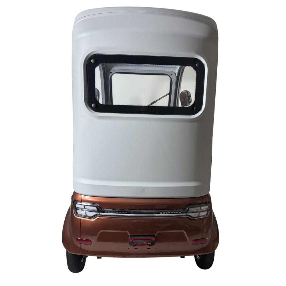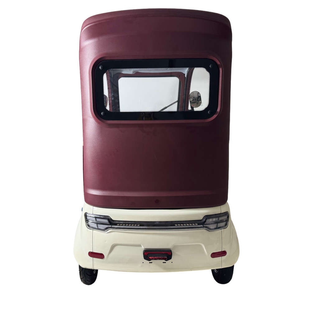 Модель створена для тих, хто цінує стабільність триколісної конструкції, зручність посадки, захист від дощу та вітру, а також економічність електричної тяги.
