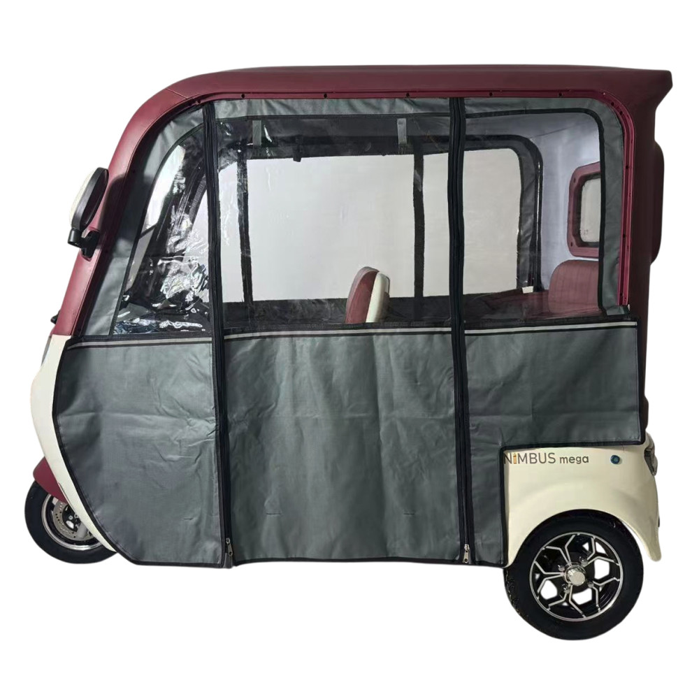 Основна відмінність FADA NiMBUS MEGA — оновлене кузовне виконання з дахом і лобовим склом, доповнене знімними вініловими шторками-дощовиками. Така конфігурація дозволяє насолоджуватись поїздками навіть у прохолодну осінь чи під час опадів.