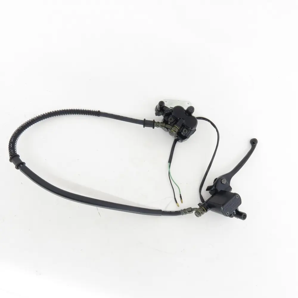 Придбання гідравліки переднього гальма в зборі означає, що ви отримуєте повний комплект, готовий до встановлення. Це усуває потребу у пошуку окремих компонентів та гарантує ідеальну сумісність усіх елементів системи. Зазвичай такий комплект включає: головний гальмівний циліндр з бачком для гальмівної рідини, гальмівний важіль, гальмівний шланг високого тиску, а також, залежно від комплектації, може містити скобу або інші необхідні для монтажу деталі. Кожен компонент спроектований для бездоганної взаємодії, забезпечуючи оптимальну передачу гальмівного зусилля від важеля до супорту. Такий підхід гарантує, що всі елементи системи будуть працювати злагоджено, забезпечуючи максимальну продуктивність та мінімізуючи ризик відмови.