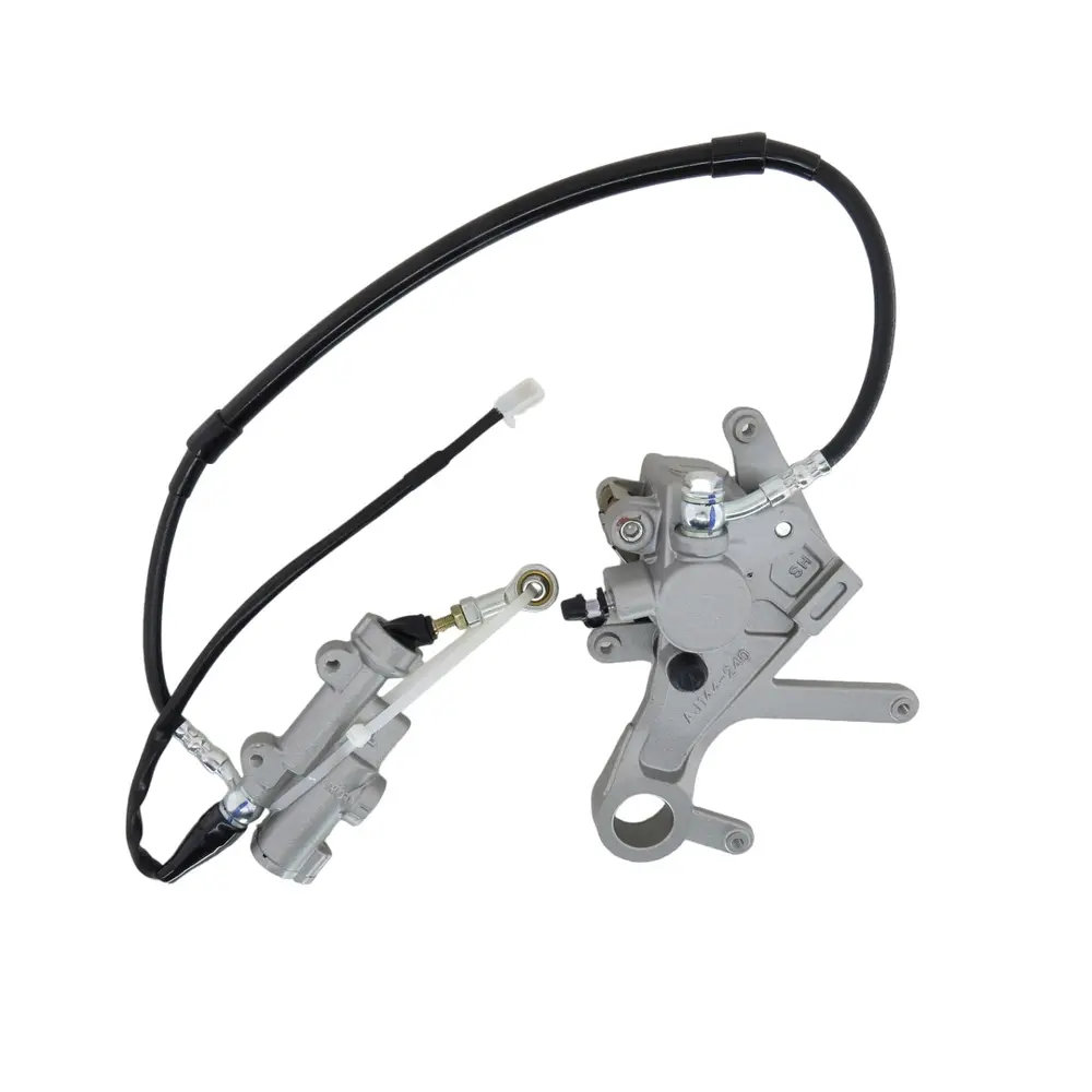 Цей комплект гідравліки заднього гальма поставляється "в зборі", що значно спрощує процес встановлення та гарантує, що всі компоненти ідеально підігнані один до одного та готові до використання. До складу комплекту зазвичай входять гальмівний циліндр (або головний гальмівний циліндр) з інтегрованим розширювальним бачком для гальмівної рідини, високоякісний гальмівний шланг та відповідні кріплення та фітинги. Кожен елемент ретельно підібраний та виготовлений з матеріалів, що забезпечують максимальну довговічність та стійкість до агресивного зовнішнього середовища, пилу, бруду та вологи, в якому часто експлуатуються ендуро-мотоцикли.