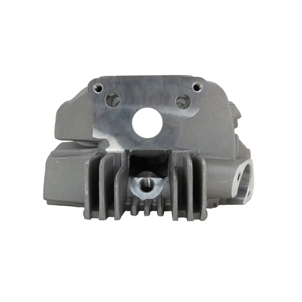 Дана головка циліндра виготовлена з високоміцного алюмінієвого сплаву, що забезпечує відмінне тепловідведення та стійкість до деформацій при високих температурах. Порожня конфігурація дає вам гнучкість у виборі та встановленні компонентів газорозподільного механізму. Ви можете використовувати перевірені часом оригінальні компоненти, або ж обрати тюнінгові рішення для покращення характеристик двигуна. Точна геометрія посадкових місць під клапани, напрямні та інші елементи гарантує ідеальну сумісність та легкість збірки. Канали для впуску та випуску відлиті з урахуванням оптимальної аеродинаміки, що сприяє ефективному наповненню циліндра паливно-повітряною сумішшю та ефективному відведенню відпрацьованих газів, тим самим покращуючи дихання двигуна та його ККД. Це надзвичайно важливо для спортивних пітбайків, де кожна одиниця потужності має значення. Продумана конструкція також передбачає ефективні канали для циркуляції масла, що забезпечує належне змащення та охолодження рухомих частин, продовжуючи їхній ресурс та зменшуючи тертя. Кожен елемент відливки перевіряється на відповідність жорстким стандартам якості, щоб гарантувати відсутність мікротріщин та дефектів, які могли б скомпрометувати її цілісність під час експлуатації.