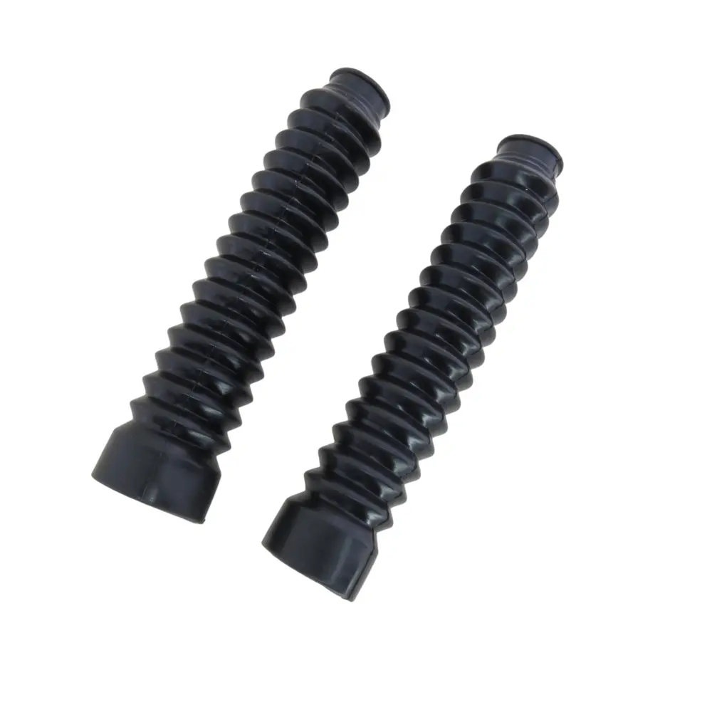 Виготовлені з міцного та еластичного гумового матеріалу, гофри стійкі до перепадів температур, ультрафіолетового випромінювання, впливу хімічних реагентів та механічних пошкоджень. Їхня гофрована структура дозволяє їм легко стискатися та розтягуватися разом з ходом вилки, не створюючи додаткового опору та не обмежуючи її рух. Це забезпечує безперебійну роботу підвіски та високий рівень комфорту під час їзди, незалежно від умов. Високоякісна гума не тріскається і не втрачає своїх захисних властивостей навіть при тривалому інтенсивному використанні.