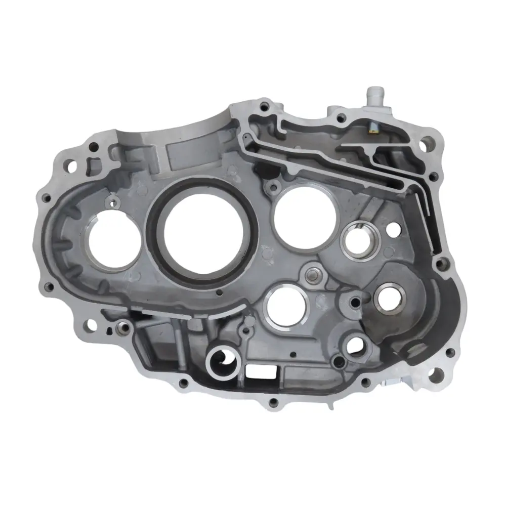 Правий картер двигуна виконує кілька критично важливих функцій. Він слугує основою для кріплення циліндра та головки, утримує колінчастий вал, підшипники та сальники, які забезпечують герметичність системи змащування. Всередині картера проходять масляні канали, що забезпечують подачу моторного мастила до всіх життєво важливих елементів, запобігаючи перегріву та зносу. Також він часто містить частини трансмісії або механізми приводу, такі як масляний насос чи стартер. Його цілісність та точність виготовлення безпосередньо впливають на вібрацію двигуна, його акустичні характеристики, а також на загальний ресурс мотоцикла.