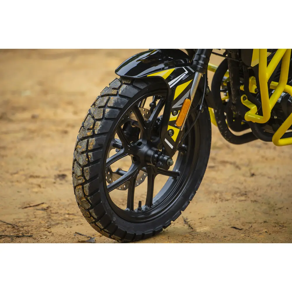 Рама виготовлена з низьковуглецевої сталі, що забезпечує міцність та довговічність конструкції. Ланцюговий привід забезпечує ефективну передачу потужності, а передня телескопічна вилка перевернутого типу разом із заднім маятниковим амортизатором гарантують м'яку їзду навіть по нерівних дорогах.