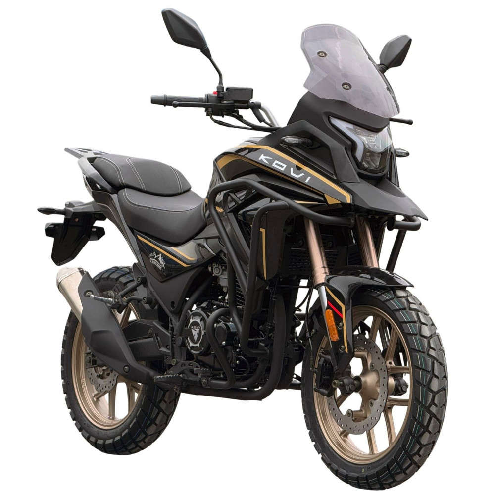 KOVI ADV 300 – це втілення справжнього духу пригод, байк, який однаково впевнено почувається як на гладкому асфальті міських вулиць та автомагістралей, так і на вибоїстих ґрунтових дорогах, лісових стежках або кам'янистих підйомах. Його універсальність дозволяє вам легко перемикатися між режимами використання: від щоденних поїздок на роботу до захопливих вихідних подорожей або тривалих експедицій. Цей мотоцикл не лише доставить вас до пункту призначення, але й дозволить насолодитися кожним моментом шляху, відкриваючи нові місця та емоції, які приховані за межами звичайних маршрутів. Завдяки своїй адаптивності, KOVI ADV 300 стає ідеальним вибором для тих, хто шукає один мотоцикл для всіх типів подорожей.