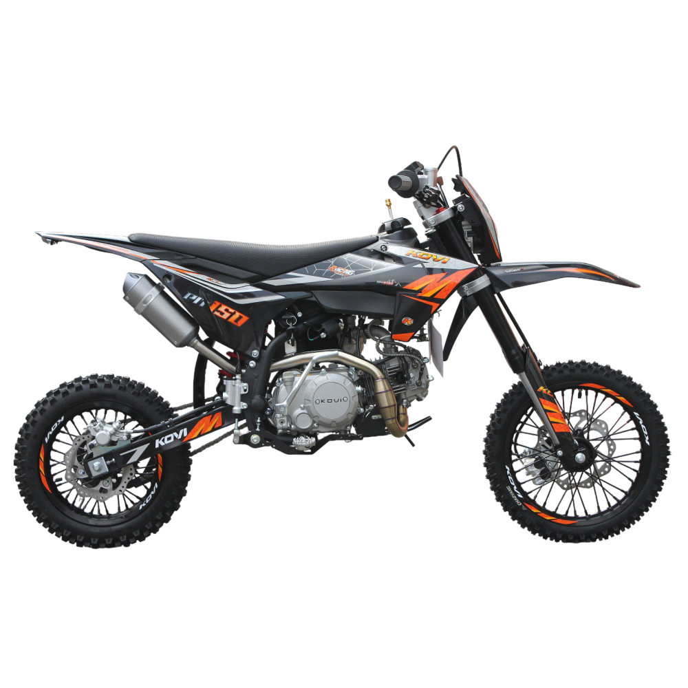 Пітбайк KOVI PIT 150 — це серйозний байк для перегонів у категорії ендуро, створений для агресивного стилю їзди та непростих умов. Його технічне наповнення і візуальна естетика одразу натякають: перед вами не іграшка, а справжній залізний партнер для екстриму.
