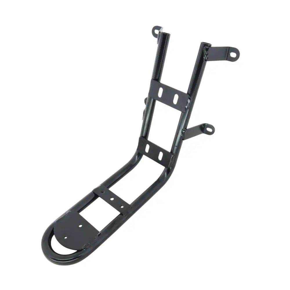 - Надійна конструкція: Продумана геометрія та посилені зварні шви забезпечують високу жорсткість конструкції. Кронштейн надійно утримує кошик навіть при повному завантаженні та під час руху по нерівній дорозі, запобігаючи вібраціям та розхитуванню.