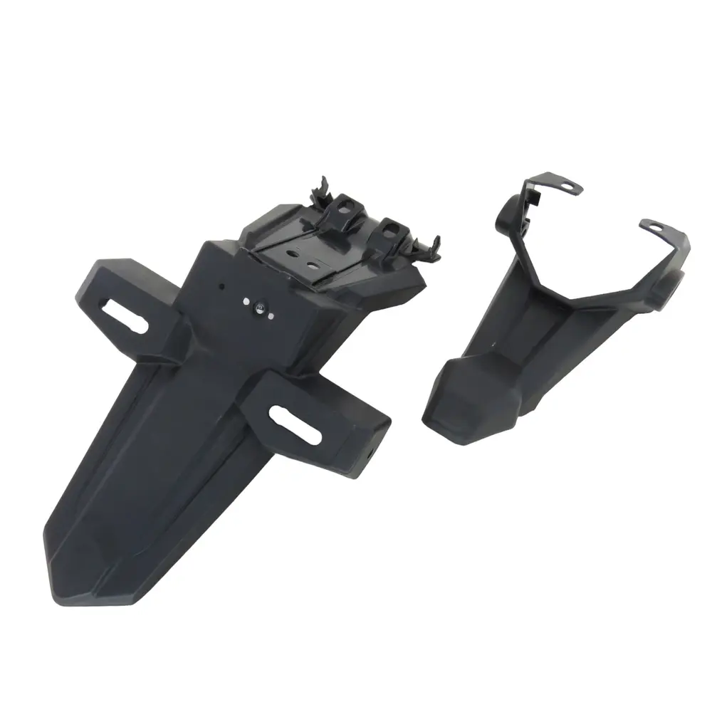 - Інтегрований кронштейн для номерного знака: Однією з ключових функціональних особливостей цього крила є вбудований елемент для кріплення номерного знака. Це не тільки спрощує процес встановлення номерного знака, а й забезпечує його надійну фіксацію, запобігаючи втраті або пошкодженню під час активної їзди. Конструкція передбачає оптимальне розташування номерного знака відповідно до чинних правил дорожнього руху.