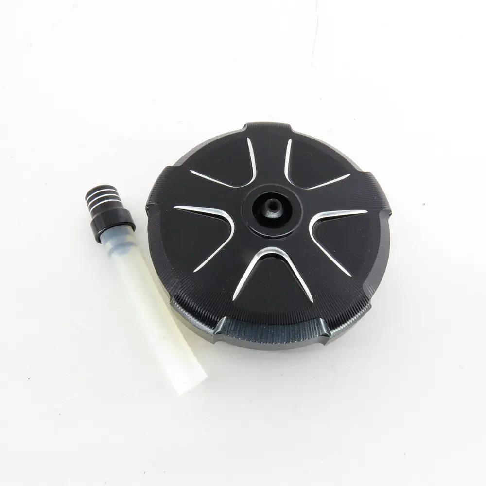 Однією з головних переваг цієї кришки є її матеріал – алюміній. Вибір алюмінію для виробництва цієї деталі не випадковий, оскільки він забезпечує оптимальне поєднання міцності, легкості та стійкості до корозії. На відміну від пластикових аналогів, алюмінієва кришка значно довговічніша та стійкіша до механічних пошкоджень, таких як подряпини, відколи чи деформації, які можуть виникнути внаслідок падінь або ударяння гілок. Алюміній не піддається впливу агресивних хімічних компонентів пального, що гарантує збереження його властивостей протягом тривалого терміну експлуатації. Легка вага алюмінію також сприяє зниженню загальної маси мотоцикла, що хоч і є незначним показником для окремої деталі, але в комплексі з іншими тюнінговими елементами дозволяє оптимізувати характеристики керованості та динаміки.