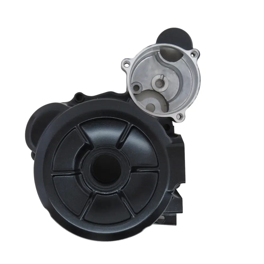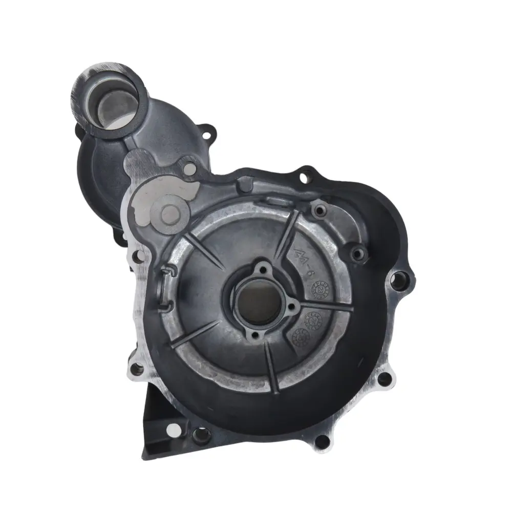 Ліва кришка двигуна для мотоциклів з двигуном 166FMM, зокрема для моделі TEKKEN 250, є невід'ємною частиною силового агрегату. Вона відповідає за герметичне закриття лівої половини картера, де розташовані такі ключові елементи, як статор генератора, ротор (маховик), а також іноді елементи системи запалювання та інші механізми. Виготовлена з міцного алюмінієвого сплаву методом лиття під тиском, ця кришка має високу стійкість до механічних навантажень, перепадів температур та корозії. Її конструкція точно відповідає оригінальним специфікаціям, забезпечуючи ідеальну посадку та легкість монтажу. Зовнішній вигляд кришки ретельно продуманий, щоб гармонійно вписуватися в загальний дизайн двигуна та мотоцикла. Наявність усіх необхідних кріпильних отворів та посадочних місць для ущільнювачів гарантує повну герметичність, запобігаючи витоку масла та потраплянню забруднень всередину двигуна.