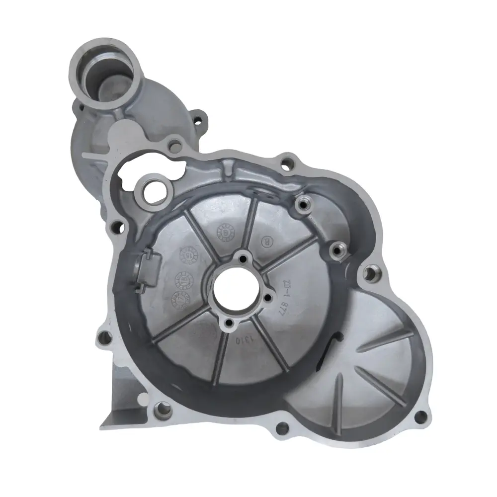 Виготовлена з високоміцного алюмінієвого сплаву, ця кришка двигуна відрізняється підвищеною стійкістю до ударних навантажень, корозії та впливу високих температур, що є нормою для працюючого двигуна. Металевий сплав забезпечує оптимальне поєднання міцності та легкості, що мінімізує додаткове навантаження на мотоцикл, не компрометуючи захисні властивості. Точне лиття та подальша механічна обробка гарантують бездоганну геометрію та гладкість поверхонь, необхідних для щільного прилягання прокладки та запобігання будь-яким витокам моторного мастила. Поверхня кришки часто має спеціальне покриття, яке не тільки покращує зовнішній вигляд, але й додає додатковий захист від подряпин, відколів та атмосферних впливів, зберігаючи естетику мотоцикла протягом тривалого часу. Це гарантує, що деталь не втратить свої функціональні та візуальні якості навіть після тривалої та інтенсивної експлуатації.