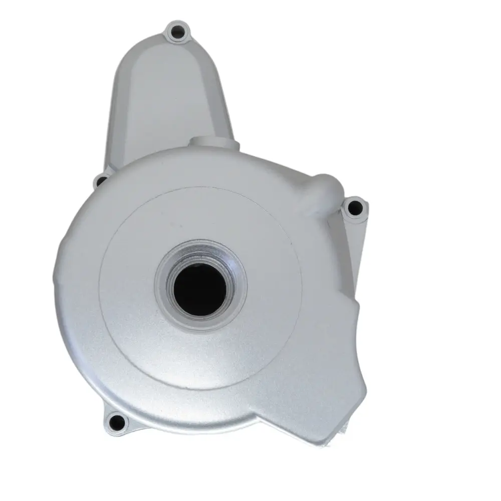 Для виготовлення цієї лівої кришки двигуна використовується міцний алюмінієвий сплав, який відомий своєю високою стійкістю до корозії, механічних пошкоджень та перепадів температур. Цей матеріал не тільки забезпечує надійний захист, але й має відносно невелику вагу, що важливо для загальної маси мотоцикла. Завдяки точній технології лиття та обробки, кришка має ідеальні геометричні розміри, що гарантує безпроблемну установку та герметичність з'єднання з блоком двигуна. Зовнішня поверхня може бути покрита спеціальною фарбою або мати природний металевий вигляд, що відповідає заводському дизайну мотоцикла VIPER Active. Це покриття додатково захищає метал від окислення та дрібних подряпин, зберігаючи естетичний вигляд деталі на довгий час.