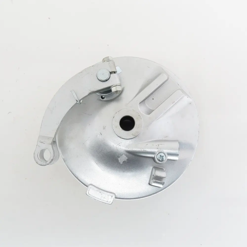 Кришка переднього колеса ZS125J, яку часто називають ступицею або маточиною барабанного гальма, є не просто захисним елементом. Вона слугує корпусом для всього гальмівного механізму, захищаючи його від бруду, води та інших зовнішніх факторів, які можуть негативно вплинути на роботу гальм. Водночас, вона є основою, до якої кріпляться гальмівні колодки, і забезпечує необхідний простір для їхньої взаємодії з внутрішньою поверхнею барабана. Виготовлена з міцного алюмінієвого сплаву, кришка забезпечує оптимальне відведення тепла, запобігаючи перегріву гальмівної системи під час інтенсивного використання. Це особливо важливо для підтримки стабільної гальмівної ефективності в тривалих поїздках або в умовах міського трафіку з частими зупинками.