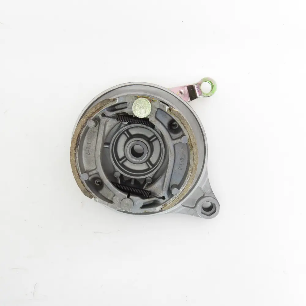 Кришка заднього колеса виготовлена з високоміцного алюмінієвого сплаву методом точного лиття під тиском. Цей матеріал обраний не випадково: він поєднує в собі легкість, що важливо для зменшення непідресорених мас, відмінну стійкість до корозії та високу міцність, здатну витримувати значні механічні навантаження. Кришка виконує не лише захисну функцію для внутрішніх механізмів гальма (гальмівного кулачка, пружин, колодок), оберігаючи їх від бруду, пилу та води, але й є опорною частиною для гальмівних колодок та елементів їх кріплення. Точна геометрія кришки забезпечує ідеальне прилягання та відсутність люфтів, що є запорукою стабільного та рівномірного гальмування. Крім того, алюмінієвий сплав ефективно відводить тепло, що утворюється під час інтенсивного гальмування, запобігаючи перегріву та втраті ефективності гальм.