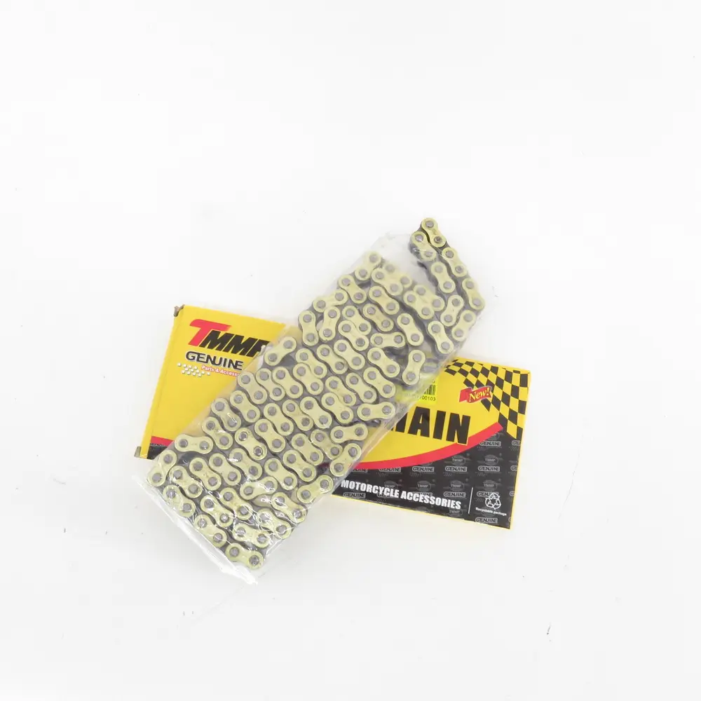 Ланцюг серії TMMP GOLD SERIES — це не просто запасна частина, це інвестиція у довговічність вашого мотоцикла та вашу впевненість у кожній поїздці. Він поєднує в собі передові технології виробництва та високоякісні матеріали, розраховані на інтенсивні навантаження та екстремальні умови експлуатації. Завдяки золотистому покриттю, цей ланцюг не тільки виділяється своїм привабливим зовнішнім виглядом, але й забезпечує додатковий захист від корозії, продовжуючи термін його служби.