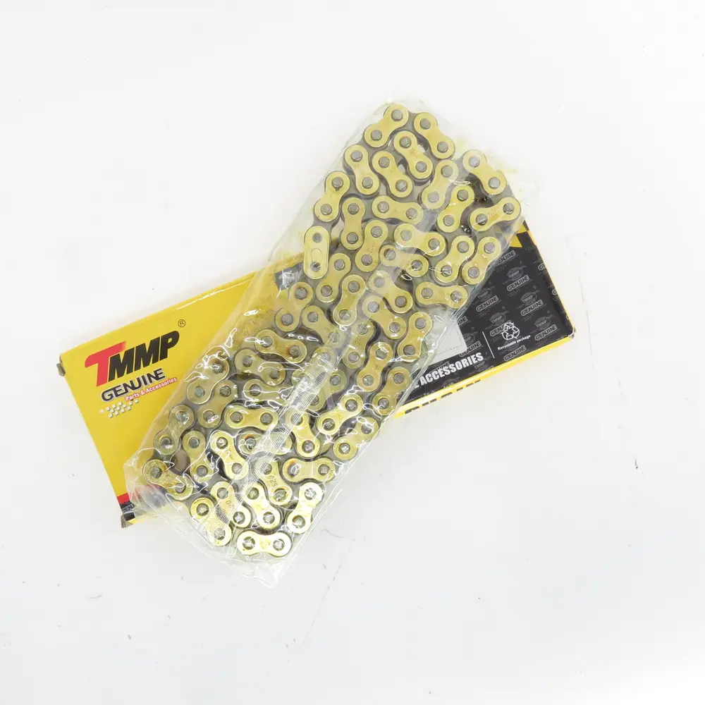 Ця модель ланцюга розроблена для мотоциклів, які вимагають безкомпромісної міцності та стабільності передачі потужності. З її винятковими характеристиками та привабливим золотим покриттям, вона не тільки покращить технічні показники вашого мотоцикла, але й додасть йому вишуканого вигляду.