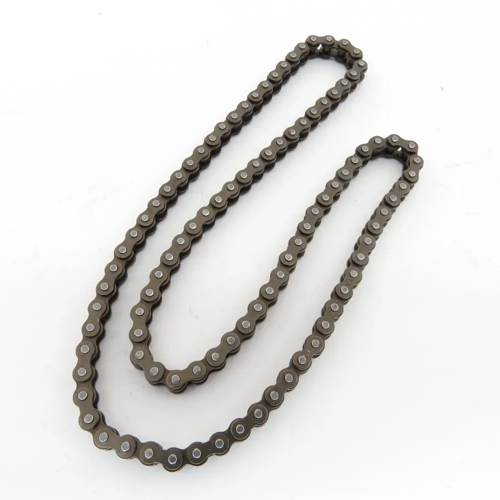 - Прецизійне виготовлення: Кожен ланцюг виробляється з дотриманням найвищих стандартів точності. Ідеальна геометрія ланок, точне розташування пінів та роликів мінімізують люфти та забезпечують плавне, безшумне обертання. Ця точність критично важлива для ідеальної синхронізації валів, що, у свою чергу, оптимізує процеси згоряння палива та виведення відпрацьованих газів.