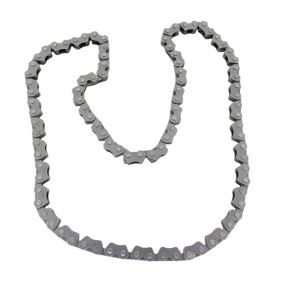 - Точне виробництво: Кожна ланка ланцюга виготовляється з високою точністю, що гарантує ідеальне прилягання до зірочок і мінімальний люфт. Це забезпечує стабільну синхронізацію колінчастого та розподільного валів, що є ключовим для оптимальної роботи двигуна та його довговічності. Точність виготовлення запобігає передчасному зносу та підвищує надійність.