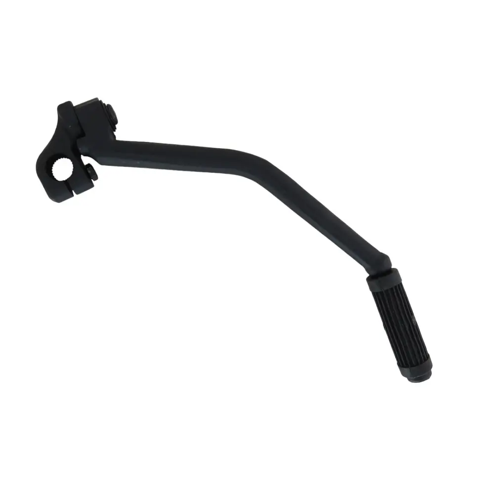 Конструкція лапки кік-стартера розроблена з максимальною увагою до деталей, щоб забезпечити зручність та ефективність використання. Вона має оптимальний кут вигину та довжину, що дозволяє легко та без зайвих зусиль задіяти механізм стартера, забезпечуючи максимальну передачу енергії від ноги до вала. Складна конструкція лапки є важливою перевагою, забезпечуючи її компактність під час руху. Це запобігає випадковому зачепленню за перешкоди на бездоріжжі або одяг райдера, підвищуючи безпеку та комфорт. Механізм складання/розкладання є надзвичайно міцним та надійним, розрахованим на багаторазове використання без появи люфтів з часом. Поверхня лапки, на яку припадає нога, обладнана спеціальним антиковзним рельєфом або гумовою накладкою, яка забезпечує надійне зчеплення з підошвою мотобота навіть у вологих, брудних або маслянистих умовах, запобігаючи зісковзуванню ноги під час запуску двигуна. Місце кріплення до вала кік-стартера виконано з високою точністю, гарантуючи щільну посадку без люфту, що є запорукою передачі максимального крутного моменту та мінімізації зносу як самої лапки, так і внутрішніх механізмів стартера. Ергономічний дизайн враховує анатомічні особливості людини, роблячи процес запуску двигуна швидким, безпечним та комфортним для райдера будь-якого зросту.