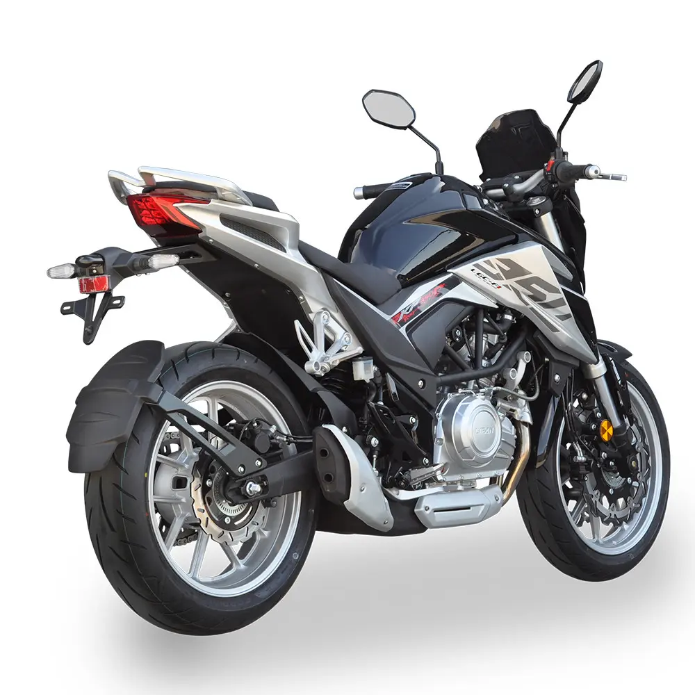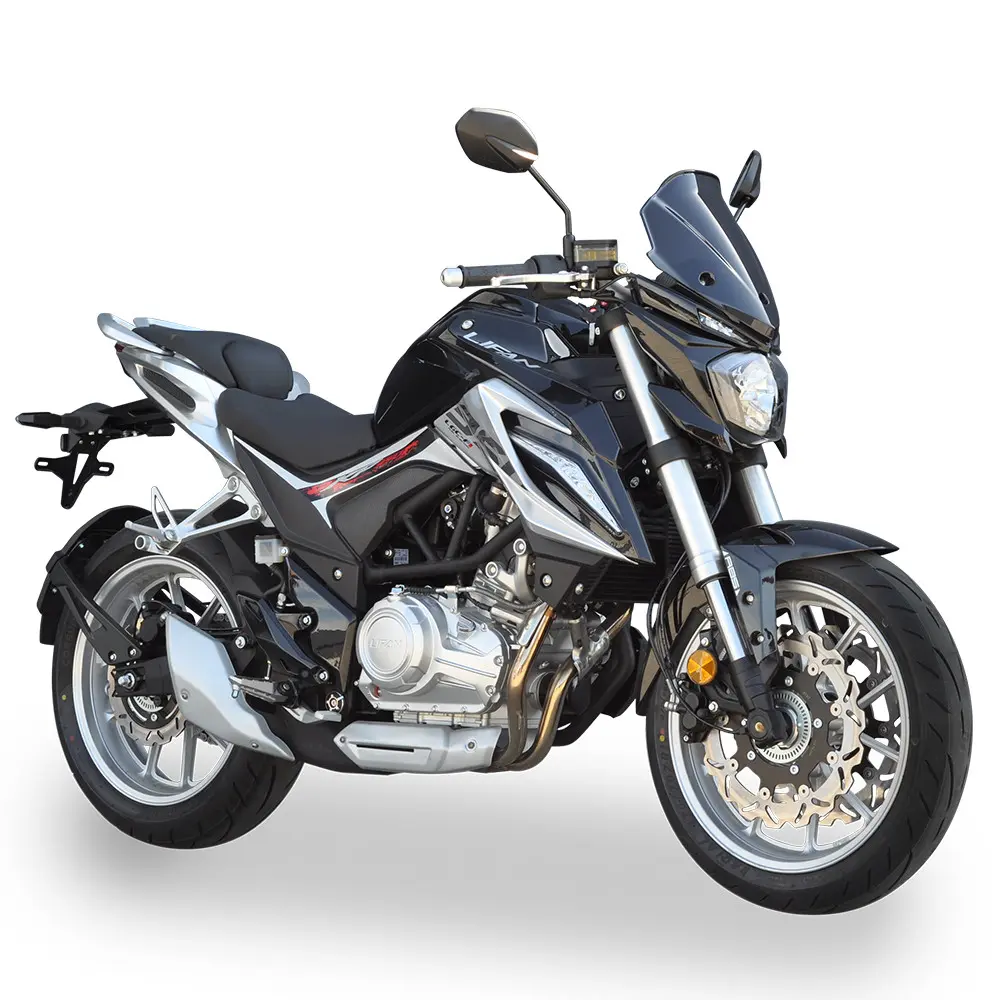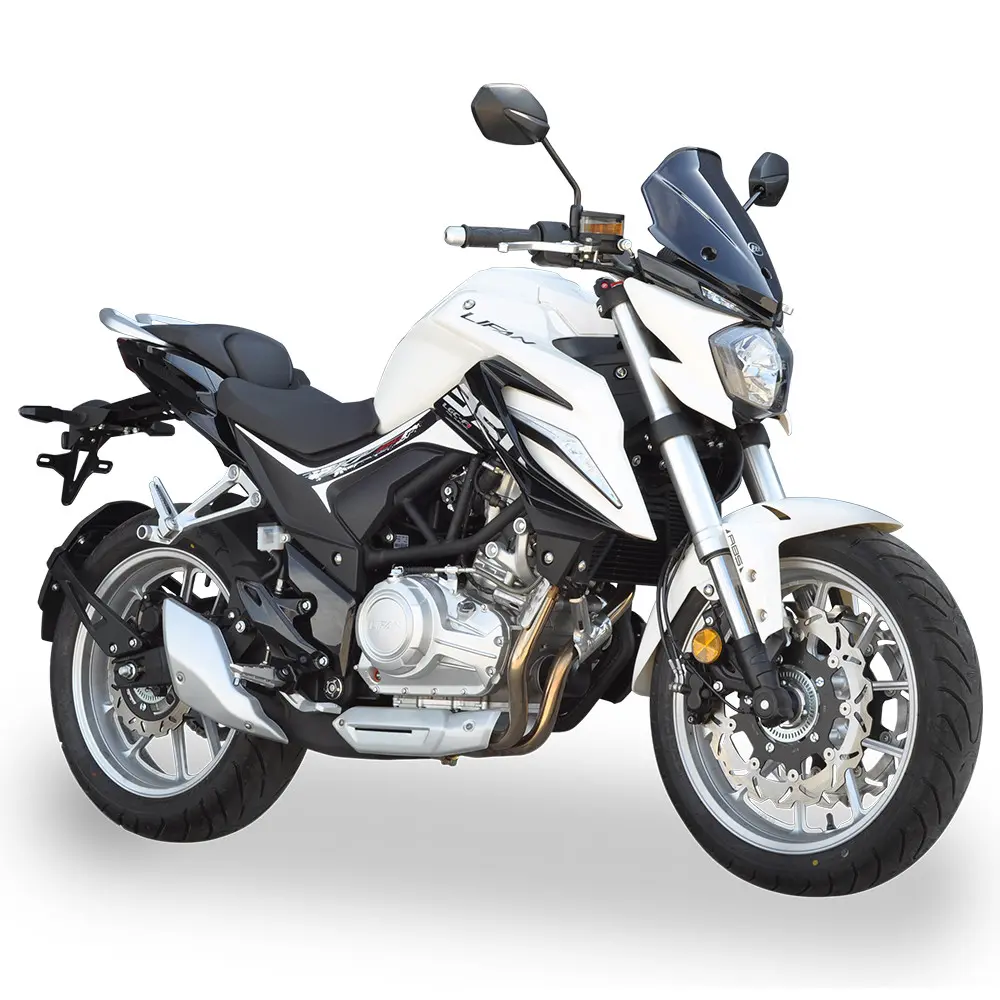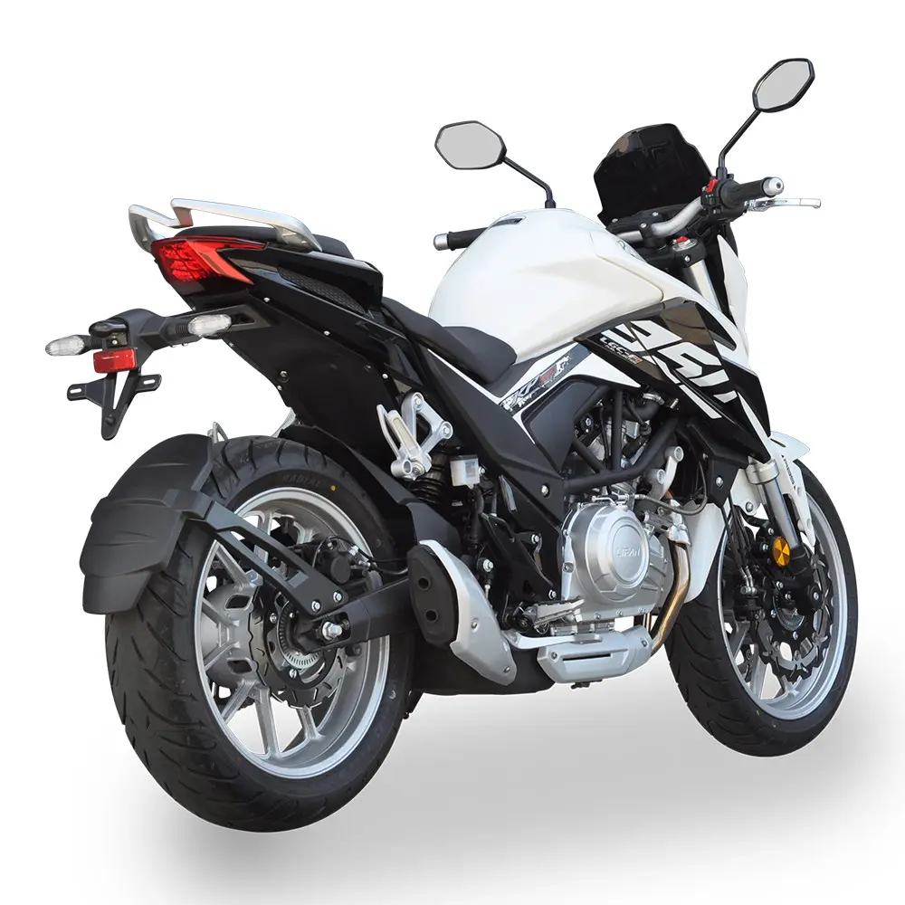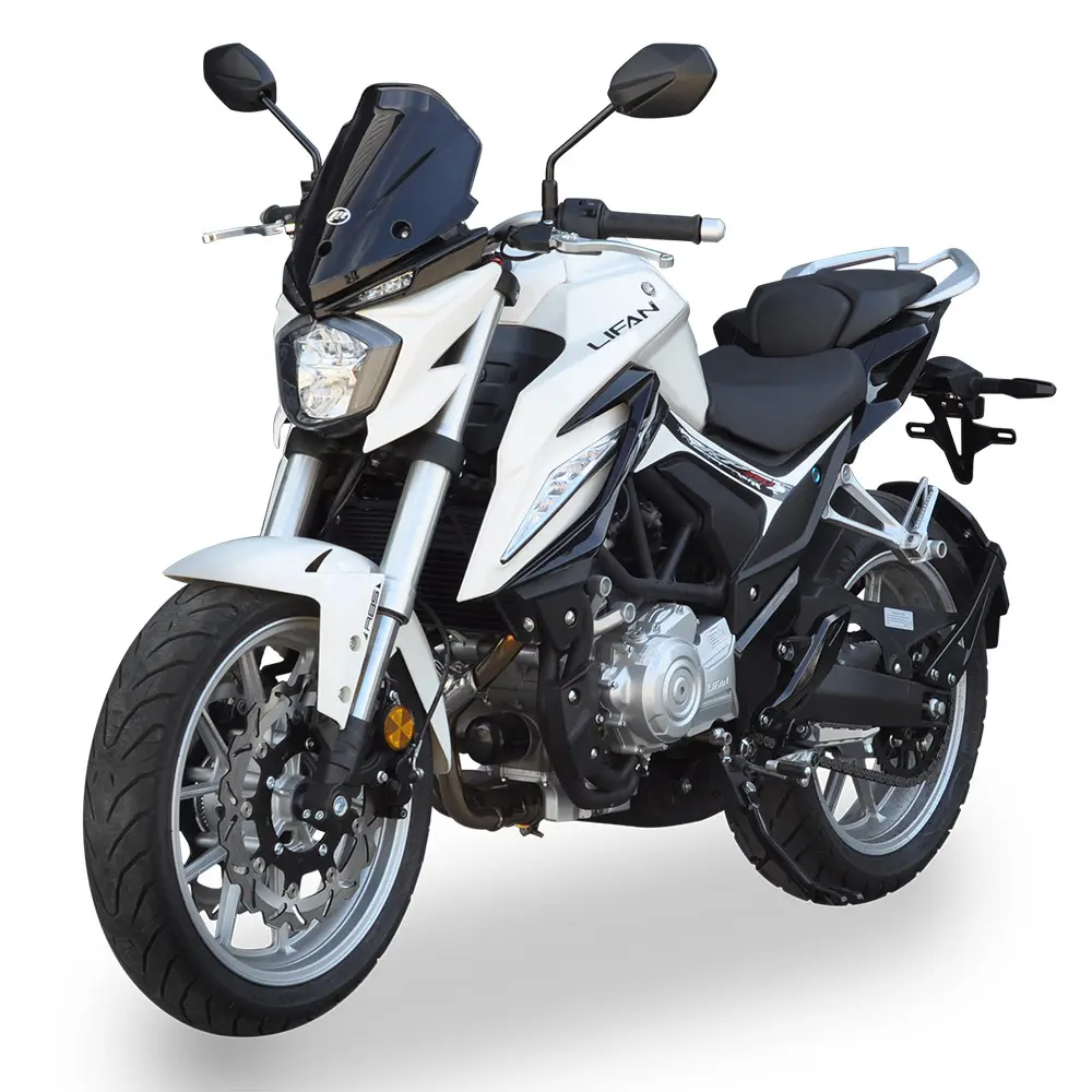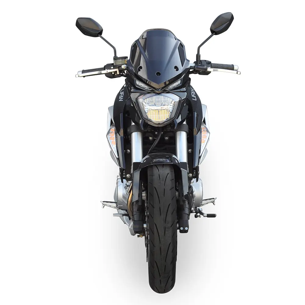 LIFAN KP350 побудований на міцній та легкій рамі, що забезпечує відмінну керованість та стабільність на дорозі. Ця конструкція гарантує точне реагування на команди водія та дозволяє мотоциклу впевнено почуватися як у щільному міському трафіку, так і на швидкісних шосе. Передня підвіска у вигляді перевернутої вилки (USD) та задній моноамортизатор гарантують плавне поглинання нерівностей та точне проходження поворотів, даруючи водію повний контроль над ситуацією та забезпечуючи комфортну їзду навіть на дорогах з неідеальним покриттям. Система гальмування представлена ефективними дисковими гальмами на обох колесах, які, за наявності, можуть бути доповнені сучасною антиблокувальною системою (ABS) для максимальної безпеки в критичних ситуаціях, запобігаючи блокуванню коліс. Широкі безкамерні шини забезпечують надійне зчеплення з дорожнім покриттям у різних умовах, підвищуючи стабільність та безпеку руху.