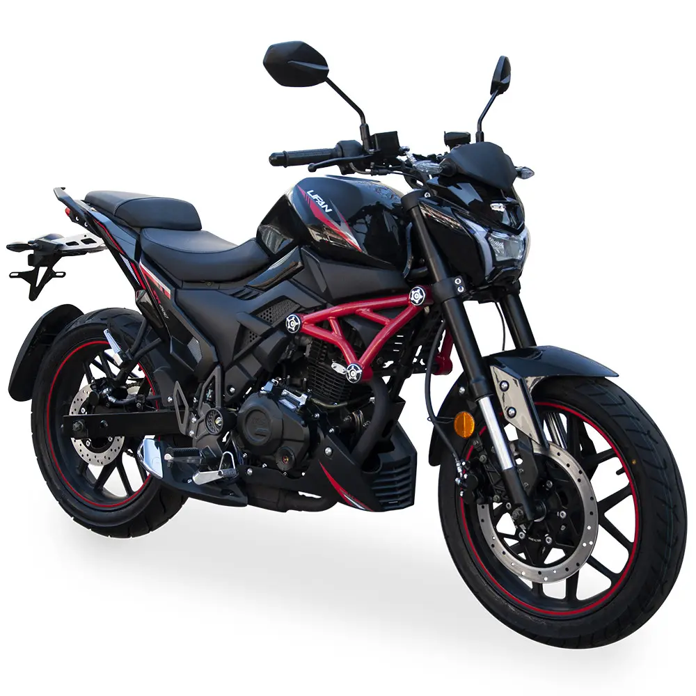 LIFAN SR200 оснащений міцною та надійною рамою, яка забезпечує відмінну жорсткість та стабільність на дорозі, дозволяючи водієві відчувати повний контроль над мотоциклом. Передня телескопічна вилка та задній моноамортизатор ефективно поглинають нерівності дорожнього покриття, гарантуючи плавність ходу та комфорт навіть на дорогах з неідеальним покриттям. Налаштування підвіски забезпечує оптимальний баланс між спортивною жорсткістю та комфортом, дозволяючи впевнено долати повороти та насолоджуватися стабільністю на прямих ділянках, що робить поїздку динамічною та приємною. Легкосплавні диски не лише додають естетичного вигляду, підкреслюючи спортивний стиль мотоцикла, але й зменшують безпружинну масу, що позитивно впливає на керованість та реакції мотоцикла на дії водія, роблячи його більш маневреним. Шини з відмінним зчепленням забезпечують надійне утримання на дорозі в різних умовах, чи то сухий асфальт, чи легкий дощ.