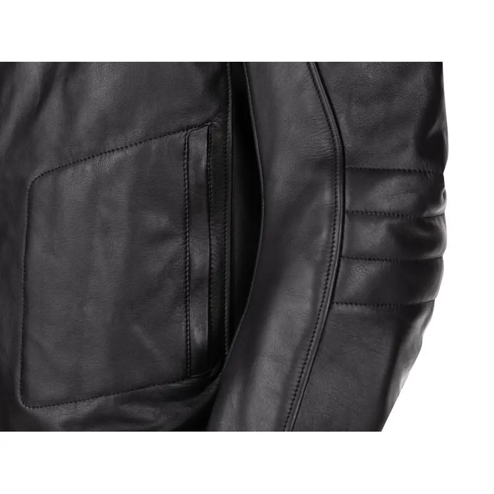 Основою мотокуртки Ridero YR GS-20119 є високоякісна натуральна шкіра преміум-класу, обрана за її виняткову міцність, стійкість до стирання та естетичний вигляд. Чорна шкіра не тільки надає куртці елегантного та агресивного вигляду, але й гарантує довговічність та надійний захист від несприятливих погодних умов. Кожен шкіряний елемент проходить суворий контроль якості, забезпечуючи ідеальне прилягання та гнучкість, що дозволяє шкірі дихати, але при цьому ефективно захищати від вітру та дрібних опадів. Використання такої шкіри робить куртку не тільки зносостійкою, але й адаптивною до форми тіла, що з часом забезпечує ще більший комфорт. Шви виконані з особливою увагою до деталей, використовуючи посилені нитки та подвійну прострочку в критично важливих зонах, що істотно підвищує загальну міцність конструкції та опір розривам при падінні. Це створює надійний бар'єр між вами та дорожнім покриттям, мінімізуючи ризики отримання травм.