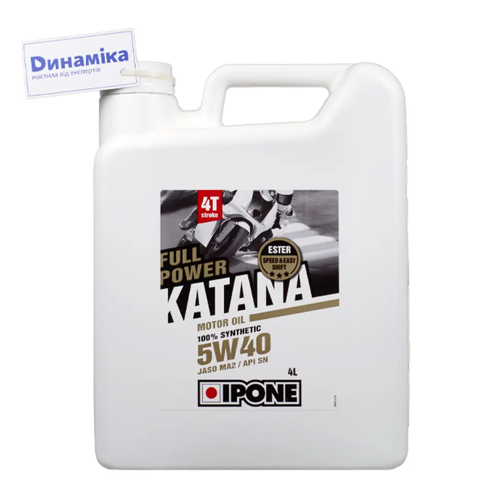 IPONE – це не просто виробник мастильних матеріалів, це легендарний французький бренд, що спеціалізується виключно на продуктах для мототехніки. Протягом десятиліть IPONE доводить свою пристрасть до мотоспорту та безкомпромісну якість, ставши офіційним партнером багатьох світових чемпіонатів та гоночних команд. Продукція IPONE розробляється та тестується в найжорсткіших умовах мотоперегонів, що гарантує її виняткову ефективність, надійність та стабільність у повсякденній експлуатації. Обираючи IPONE Full Power Katana 5W40, ви обираєте продукт, якому довіряють чемпіони та мільйони райдерів по всьому світу за його здатність забезпечувати максимальну продуктивність та захист.