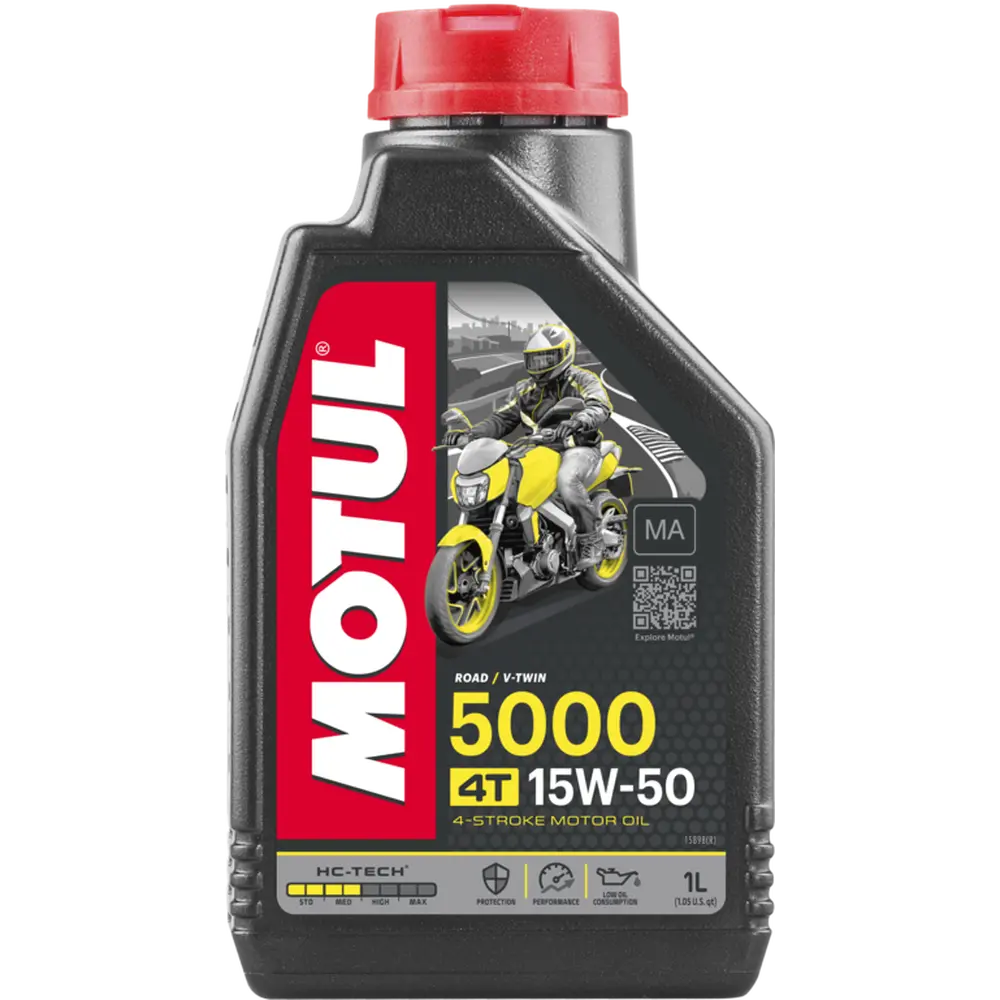 Кожен власник мотоцикла знає, наскільки важливо забезпечити його серцю – двигуну – найкращий захист та оптимальні умови роботи. Саме тому вибір моторної оливи є ключовим моментом для довговічності та безперебійної експлуатації двоколісного друга. Motul 5000 4T SAE 15W50 (1L) від легендарного французького виробника Motul – це сучасне рішення, розроблене для 4-тактних двигунів мотоциклів, що поєднує в собі передові технології та багаторічний досвід у виробництві високоякісних мастильних матеріалів. Ця олива призначена для забезпечення неперевершеного захисту та продуктивності у широкому діапазоні умов експлуатації, що робить її ідеальним вибором для міських поїздок, подорожей на далекі відстані та навіть для легкого бездоріжжя.