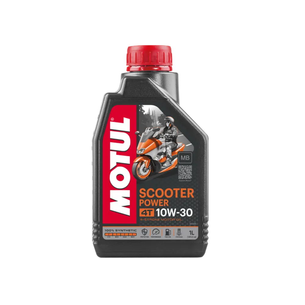 Моторна олива MOTUL Scooter Power 4T SAE 10W30 MB призначена для всіх типів чотиритактних скутерів, які вимагають моторну оливу з низьким коефіцієнтом тертя, що відповідає стандарту JASO MB. Завжди дотримуйтесь рекомендацій виробника вашого скутера щодо типу та класу в'язкості оливи, а також інтервалів її заміни, зазначених у посібнику з експлуатації. Регулярна заміна моторної оливи є ключем до довговічності та бездоганної роботи двигуна, а також запорукою його оптимальної продуктивності.