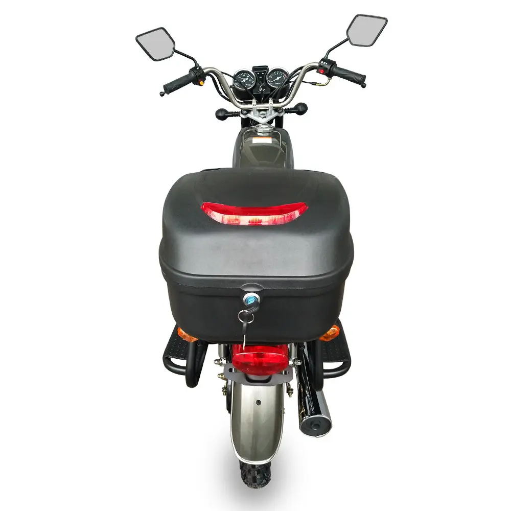 Дизайн MUSSTANG MT110-2 (Alpha) продуманий до дрібниць, щоб забезпечити максимальний комфорт та функціональність. Широке та м'яке сидіння дозволяє без втоми долати значні відстані, а ергономічне розташування керма та підніжок забезпечує природну посадку для водіїв різного зросту. Надійна та міцна рама гарантує стабільність на дорозі та довговічність конструкції. Особливу увагу заслуговує інтегрований багажник, який дозволяє легко перевозити невеликі вантажі або особисті речі, що робить Alpha ідеальним вибором для кур'єрських служб, доставки або поїздок на дачу. Сучасна оптика забезпечує відмінну видимість у темний час доби, а інформативна приладова панель дозволяє завжди контролювати основні показники мотоцикла. Металеві елементи та якісне лакофарбове покриття забезпечують стійкість до зовнішніх впливів та зберігають привабливий вигляд мотоцикла на довгі роки. Продумане розташування елементів управління забезпечує легкий доступ до всіх функцій, а зручні дзеркала заднього виду гарантують відмінний огляд.