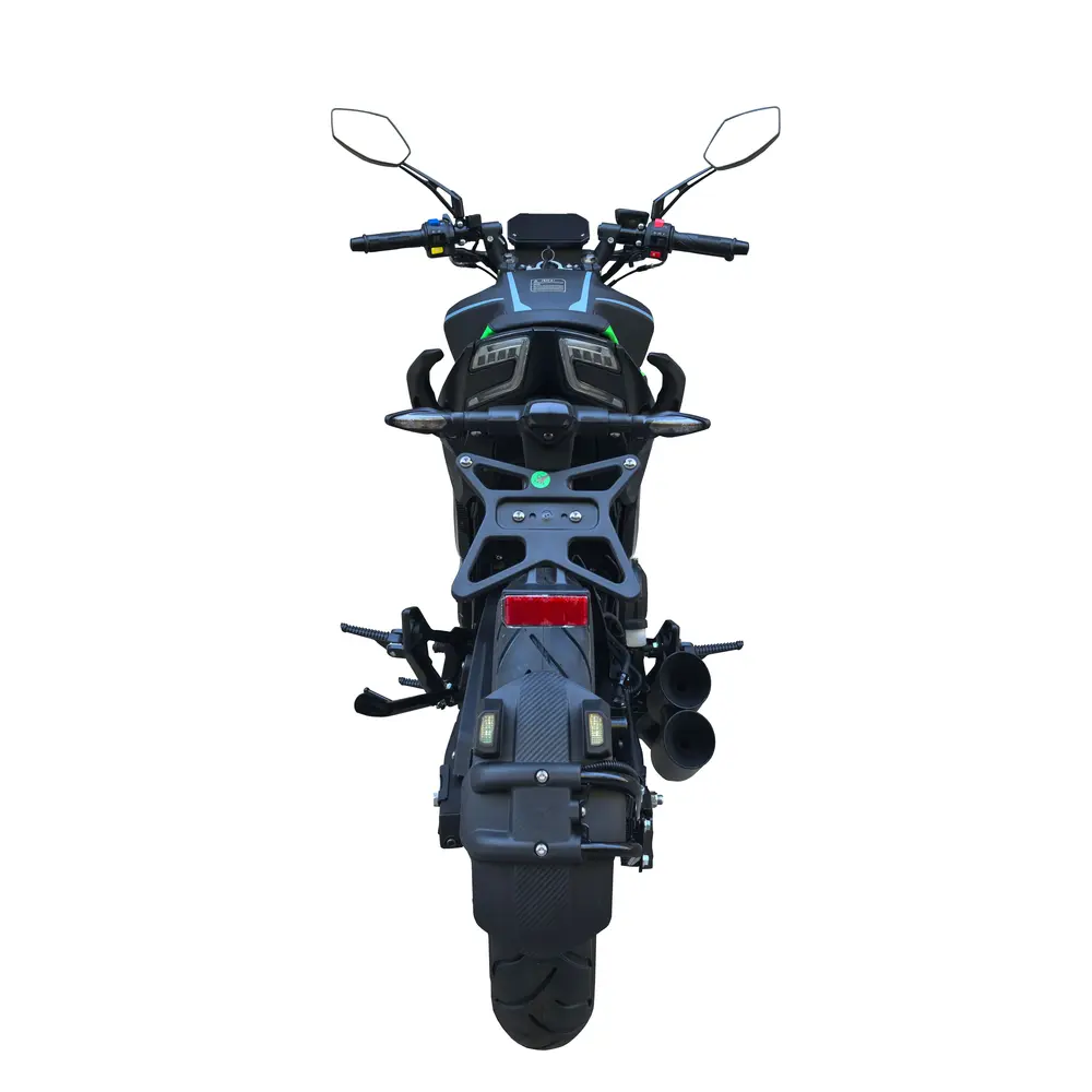 360° Помітність: Окрім яскравого заднього LED-ліхтаря, на бічних панелях бака встановлено 4 додаткові світлові елементи. Вони дублюють габаритні вогні, роблячи мотоцикл помітним збоку в сутінках — це одночасно і естетичне рішення, і важливий фактор безпеки.