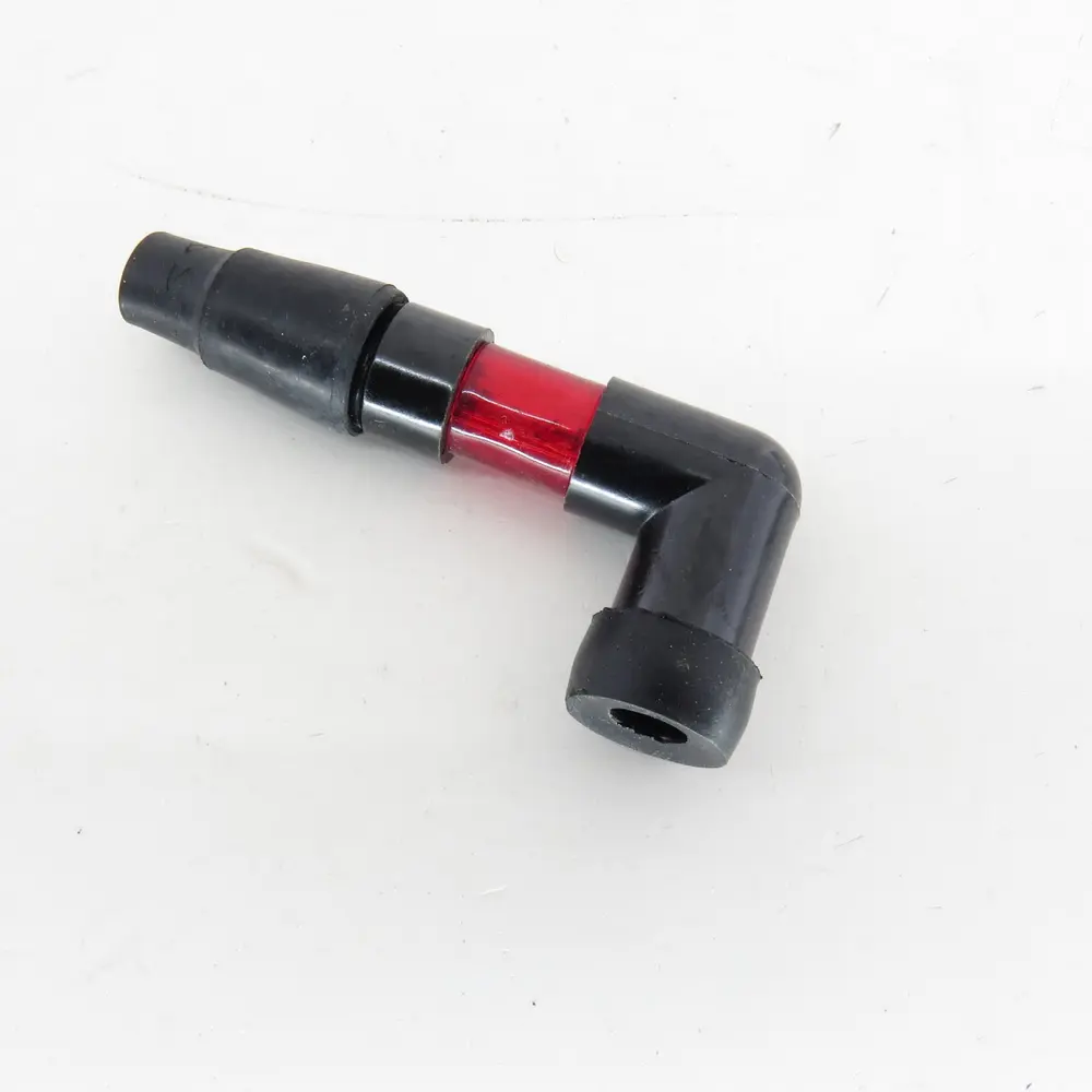 Конструкція надсвічника з кутом 90 градусів є продуманим інженерним рішенням, що забезпечує оптимальне розміщення та максимальну ергономіку в умовах обмеженого простору під баком або в обтічниках мотоцикла. Такий кут дозволяє мінімізувати натяг високовольтного дроту, запобігаючи його перегинам та потенційним пошкодженням, які можуть призвести до витоку струму або пробою ізоляції. Завдяки 90-градусному куту, монтаж надсвічника стає значно простішим, а сам елемент займає менше місця, що є критично важливим для багатьох моделей мотоциклів, де кожен міліметр простору на рахунку. Крім того, правильне розташування дроту та надсвічника зменшує ризик його випадкового від'єднання через вібрації або тертя, гарантуючи стабільну роботу системи запалювання навіть у найекстремальніших умовах експлуатації. Цей надсвічник ідеально підходить для широкого спектру мотоциклів, де потрібне компактне та надійне з'єднання. Це рішення від JS свідчить про глибоке розуміння інженерних вимог до сучасних мотоциклетних компонентів.
