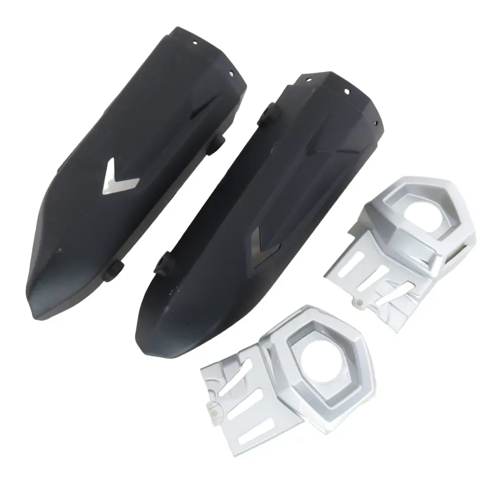 - Захист від опіків: Глушник мотоцикла під час роботи розігрівається до високих температур. Накладки створюють бар'єр, що запобігає випадковому контакту ніг водія або пасажира з гарячою поверхнею, тим самим мінімізуючи ризик отримання опіків. Це особливо актуально під час тривалих поїздок або їзди в міському трафіку.