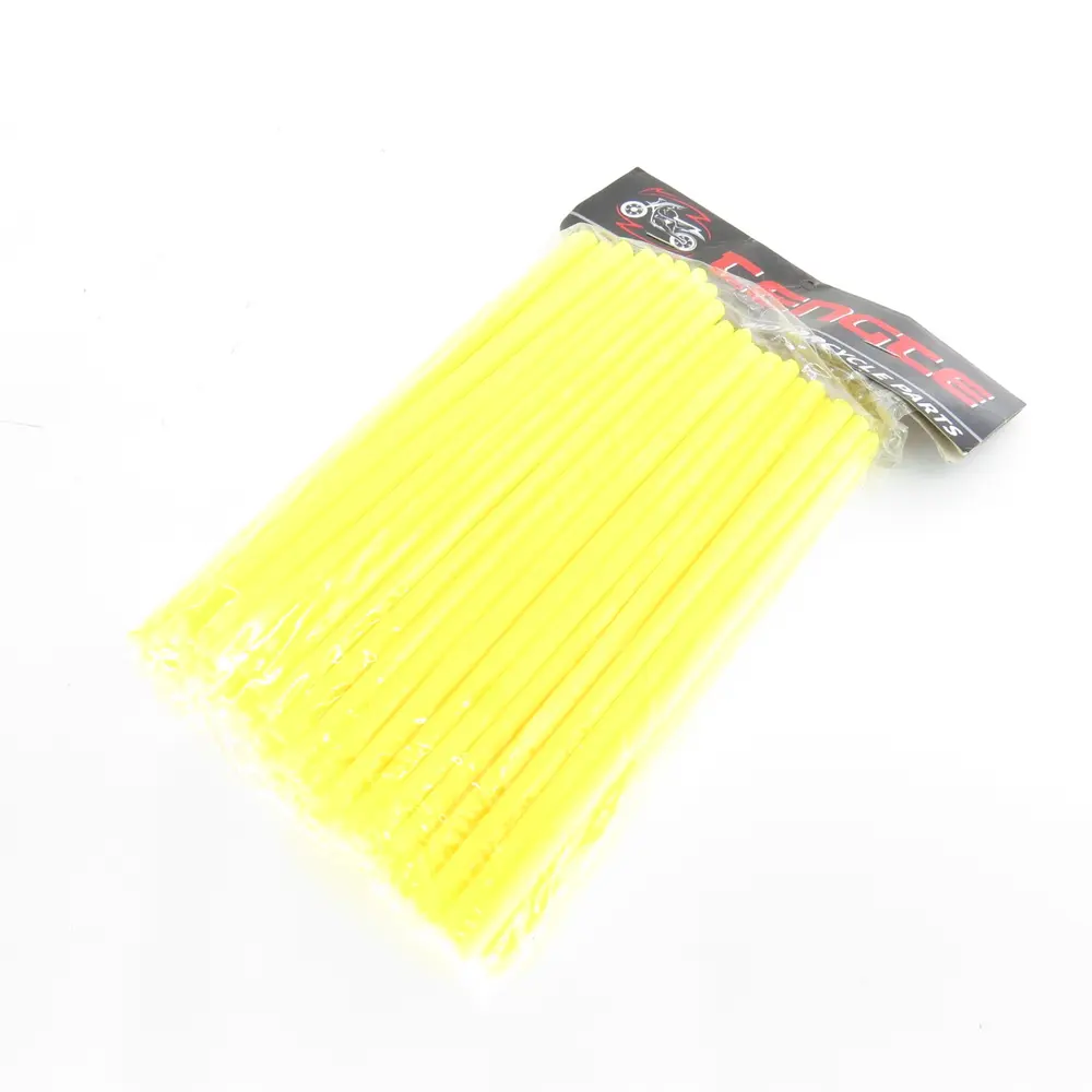 Ці накладки спеціально розроблені для максимальної універсальності. Довжина 170 мм дозволяє використовувати їх на більшості стандартних мотоциклетних спиць. У випадку, якщо довжина спиці менша, накладки легко підрізаються до потрібного розміру звичайними ножицями, що забезпечує ідеальне прилягання та естетичний вигляд. Яскравий жовтий колір не тільки привертає увагу, але й може поєднуватися з іншими елементами тюнінгу або екіпірування, створюючи гармонійний та завершений образ вашого байка. Це ідеальний вибір для райдерів, які хочуть додати своєму мотоциклу сонячного настрою та динаміки.