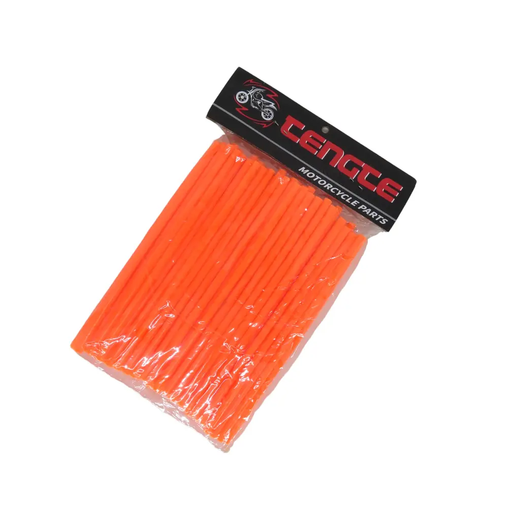 Крім вражаючого зовнішнього вигляду, накладки на спиці виконують важливу захисну функцію. Спиці коліс постійно піддаються впливу бруду, пилу, вологи, піску, дрібних каменів та інших агресивних факторів навколишнього середовища. Все це може призвести до корозії, подряпин та передчасного зносу. Наші помаранчеві накладки є надійним бар'єром, який оберігає металеві спиці від цих пошкоджень. Виготовлені з високоякісного, гнучкого та стійкого до ультрафіолету пластику, вони не вигорають на сонці, не тріскаються на морозі та зберігають свій яскравий колір протягом тривалого часу. Матеріал стійкий до механічних пошкоджень, що гарантує тривалий термін служби аксесуарів, захищаючи ваші колеса і зберігаючи їх бездоганний вигляд. Гнучкість матеріалу дозволяє їм витримувати легкі удари та вібрації без деформації, що особливо важливо при їзді по бездоріжжю або в екстремальних умовах. Це означає, що ваші спиці будуть захищені від окислення та інших деструктивних процесів, які можуть призвести до послаблення конструкції колеса. Завдяки цим накладкам, ви зможете продовжити термін служби оригінальних спиць, заощаджуючи на їх заміні та ремонті у майбутньому.