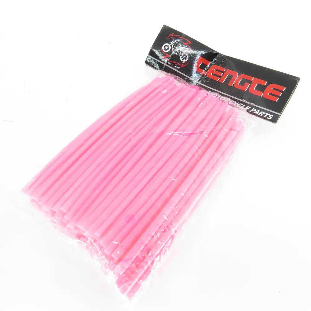 Накладки виготовлені з високоякісного гнучкого пластику, який має високу стійкість до ультрафіолетового випромінювання, перепадів температур та агресивних зовнішніх факторів. Це гарантує, що рожевий колір не вигорятиме на сонці, а матеріал не тріскатиметься та не деформуватиметься з часом. Довжина кожної накладки становить 170 мм, що робить їх універсальними для більшості стандартних мотоциклетних спиць. Завдяки гнучкості матеріалу, накладки легко надіваються на спиці та міцно фіксуються, забезпечуючи надійне кріплення навіть під час інтенсивної їзди.