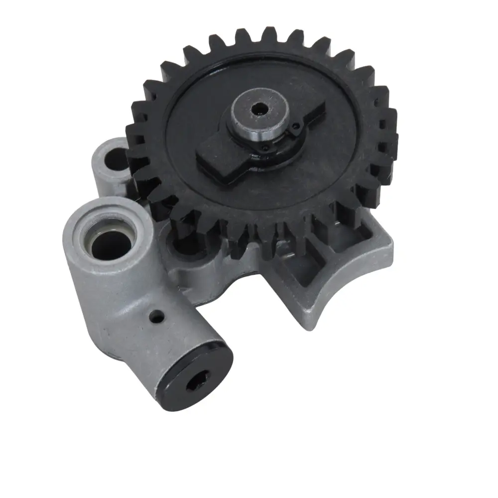 Цей масляний насос є типовим представником високоефективних шестеренчастих або роторних насосів, що застосовуються в сучасних мотоциклетних двигунах. Його корпус, зазвичай, виготовляється з міцних алюмінієвих або інших металевих сплавів, які відмінно витримують значні температурні перепади та інтенсивні механічні навантаження, що виникають під час роботи двигуна. Внутрішні компоненти, такі як прецизійно оброблені шестерні або ротори, забезпечують мінімальні люфти та високу продуктивність, що дозволяє насосу ефективно працювати з мастилом різної в'язкості в широкому діапазоні робочих температур двигуна, забезпечуючи безперебійну циркуляцію та надійне змащення.